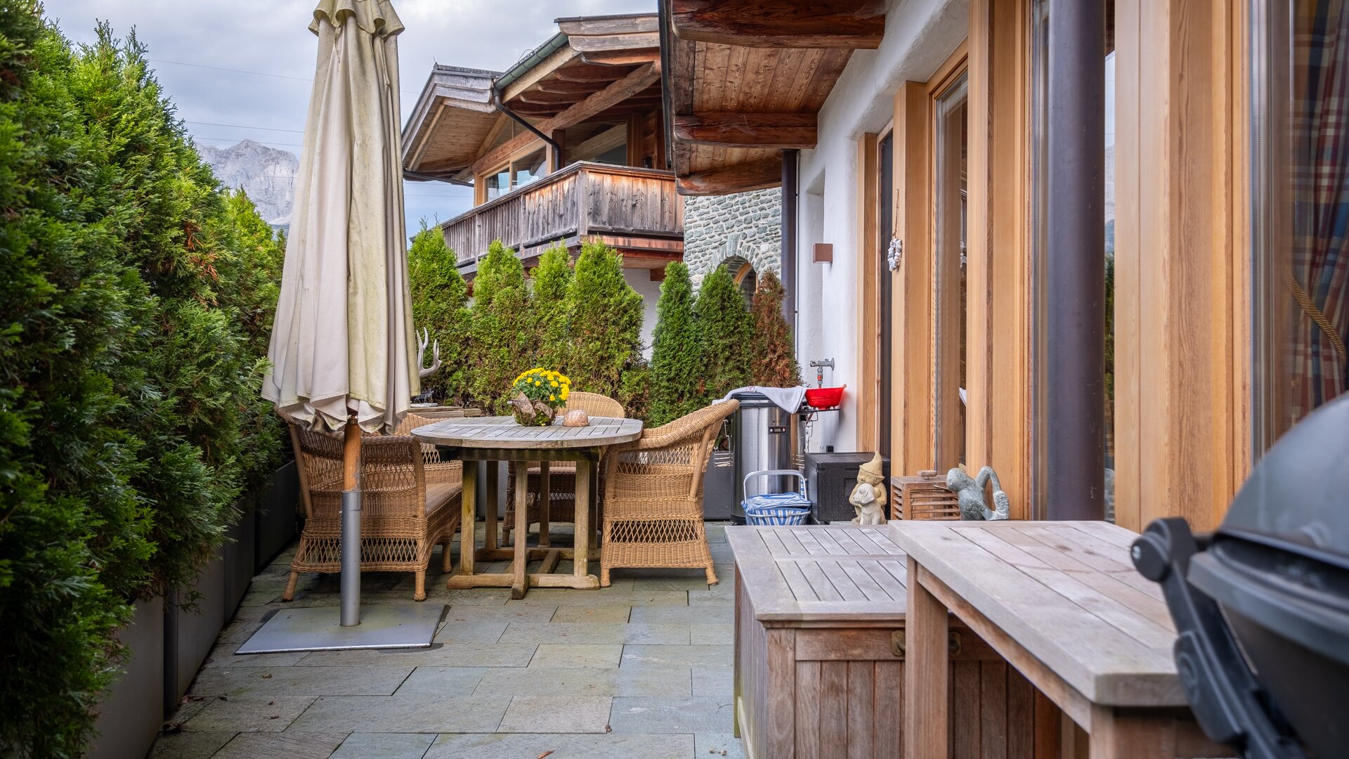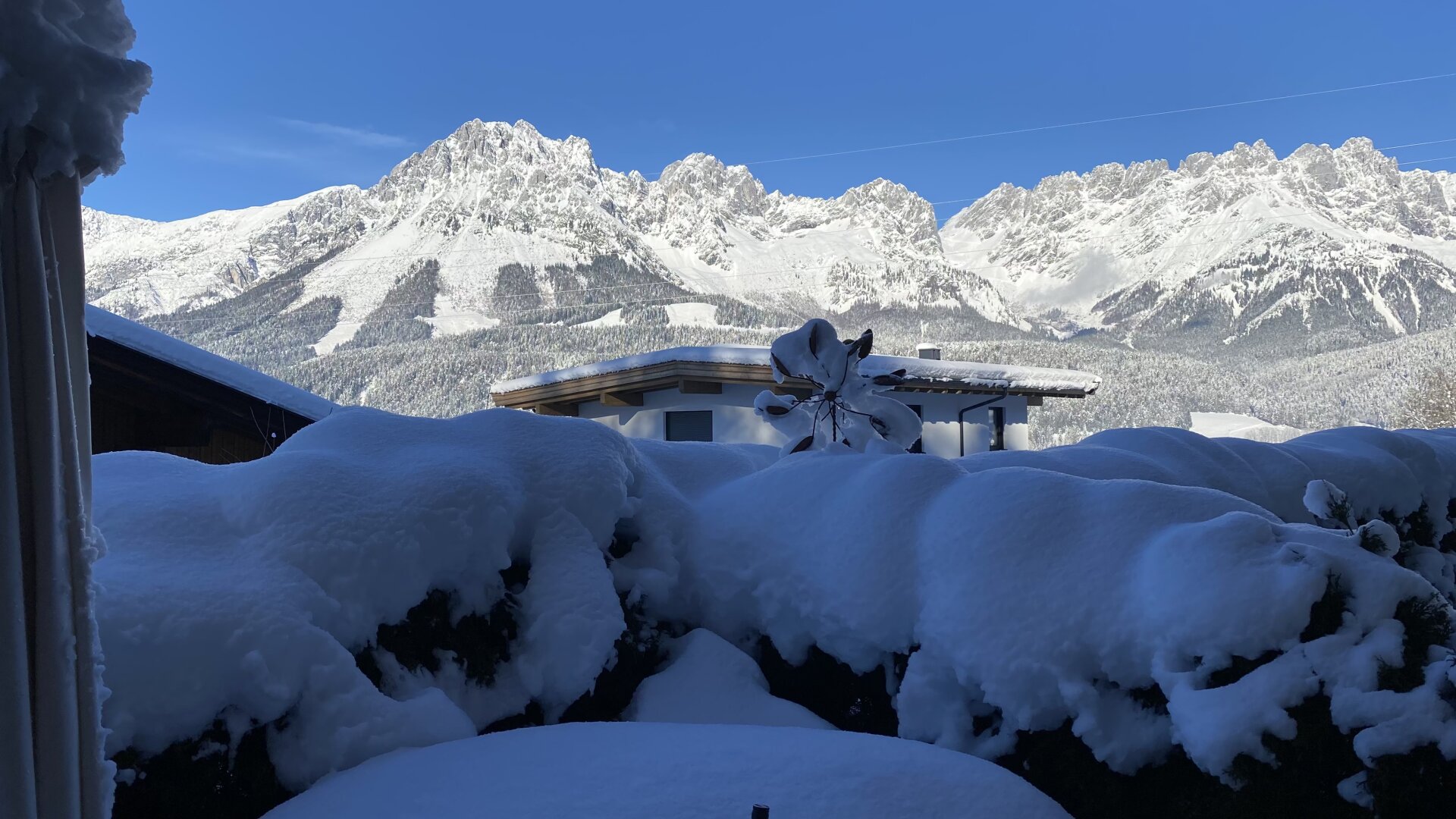 Vom Lounge – Ess und Küchenbereich als auch von den Schlafräumen gelangen Sie direkt auf die Terrassen, von denen aus Sie einen atemberaubenden Blick auf den Kaisergebirge genießen können. Der perfekte Ort, um den Tag bei einem Grillabend ausklingen zu lassen und die beeindruckende Natur zu bewundern.