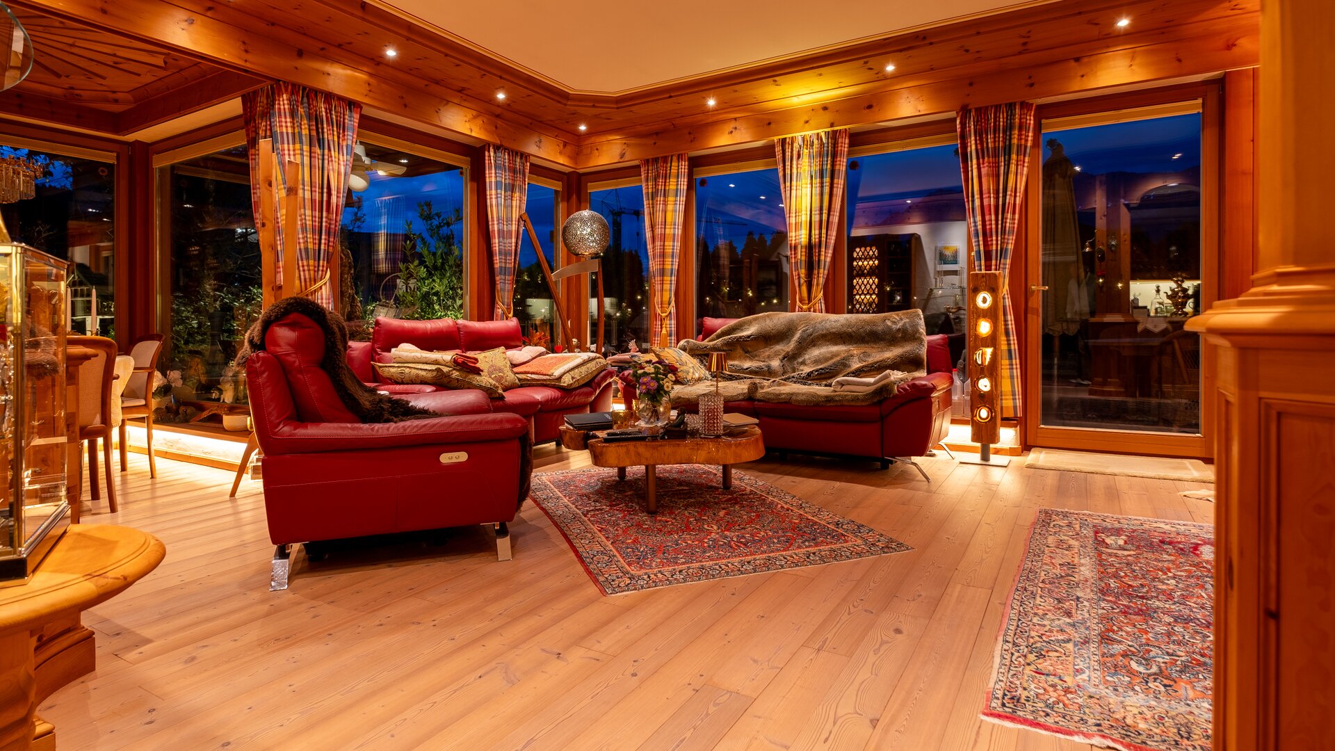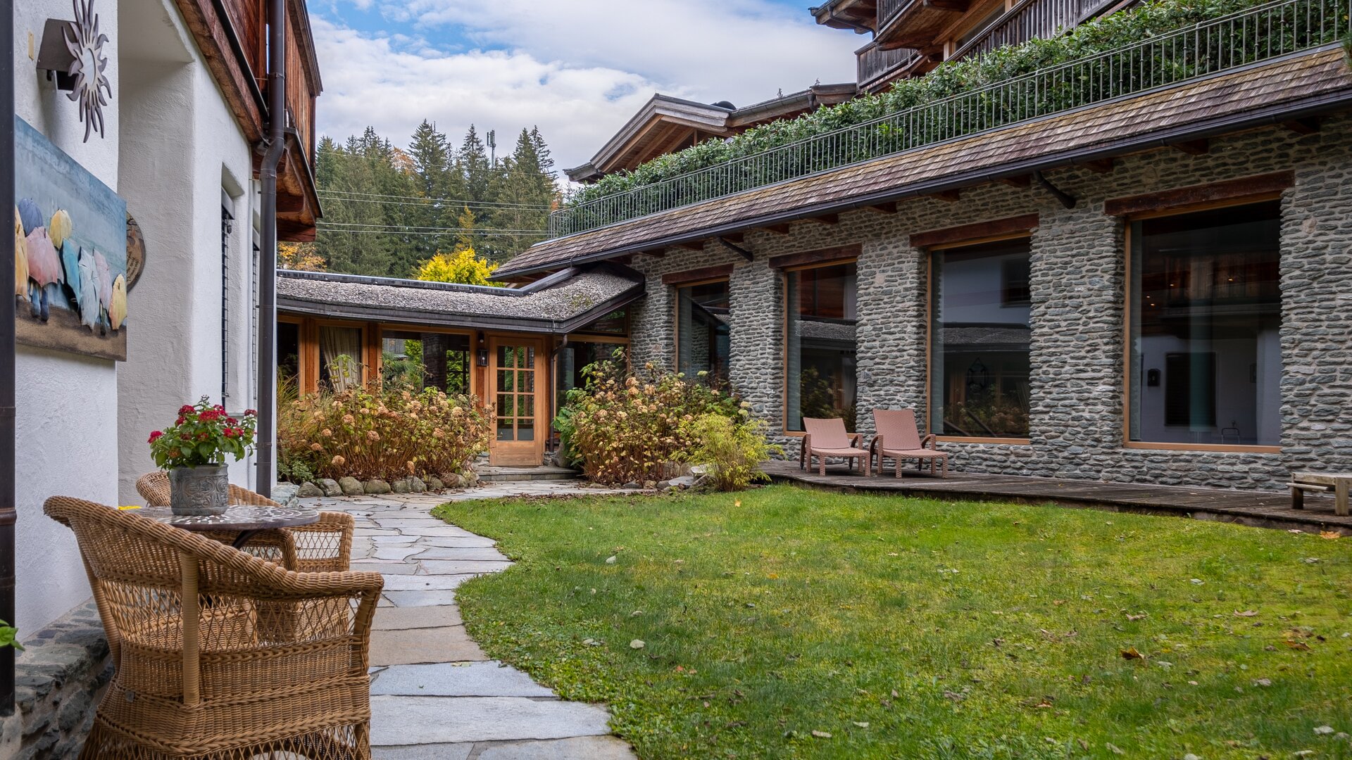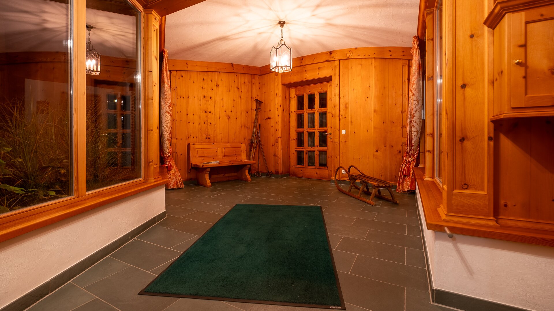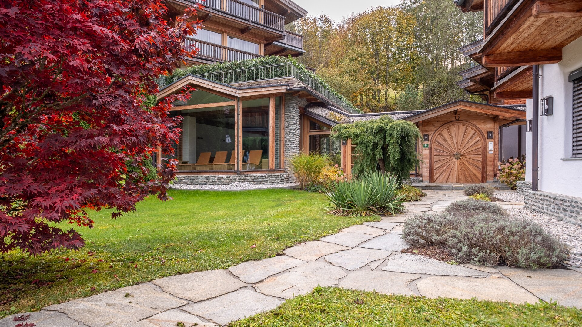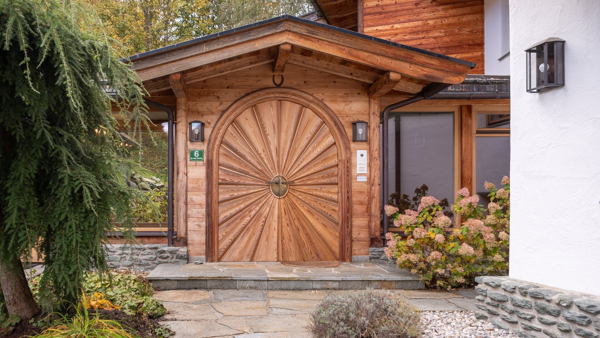 Bereits der erste Eindruck dieses Chalets ist beeindruckend. Ein stilvolles Entree heißt Sie und Ihre Gäste willkommen. Vom Vorgarten aus gelangen Sie entweder in Ihr privates Apartment oder über den praktischen Skikeller und den Aufzug direkt zu Ihrer Wohneinheit – ideal nach einem Tag auf der Piste oder einer Runde Golf.