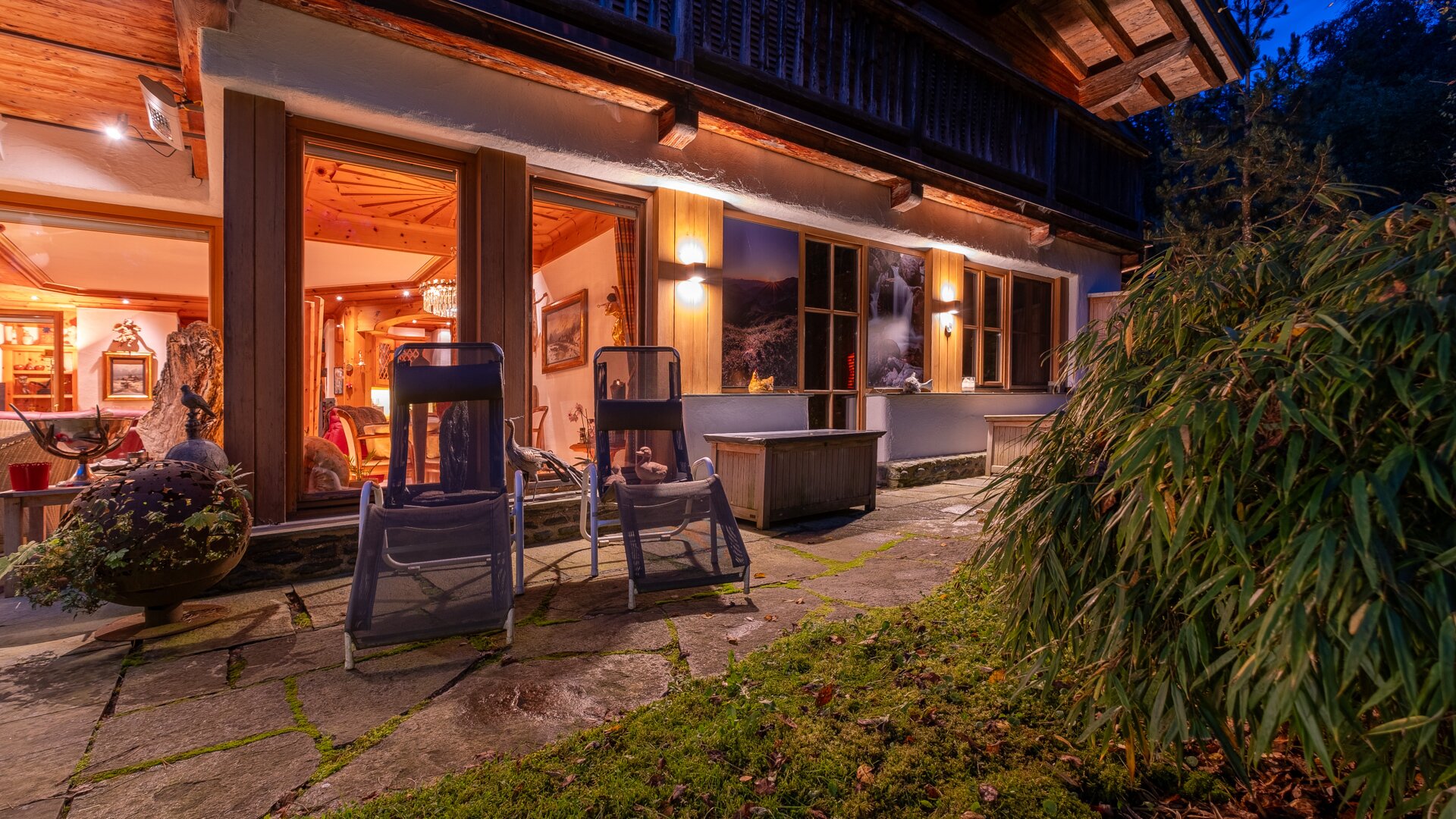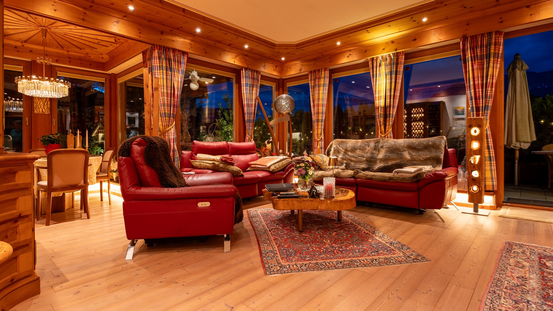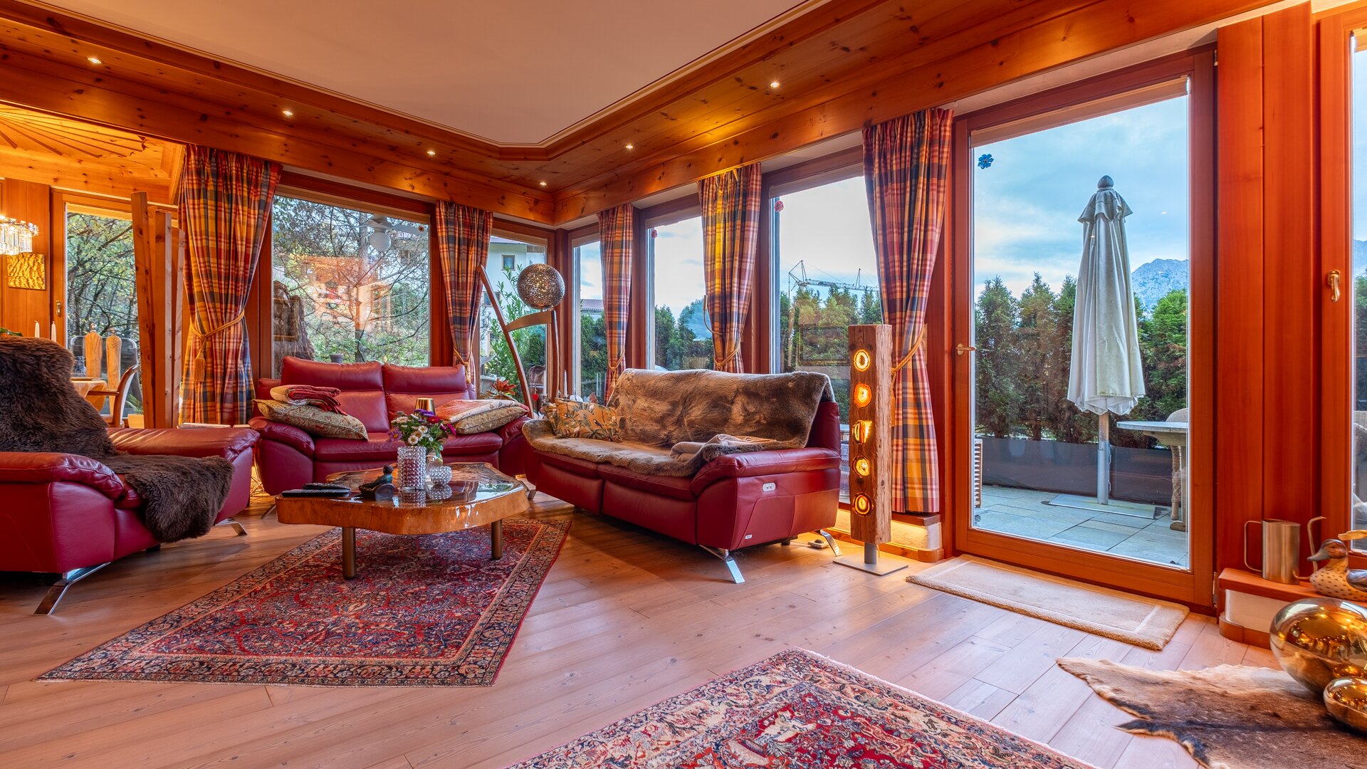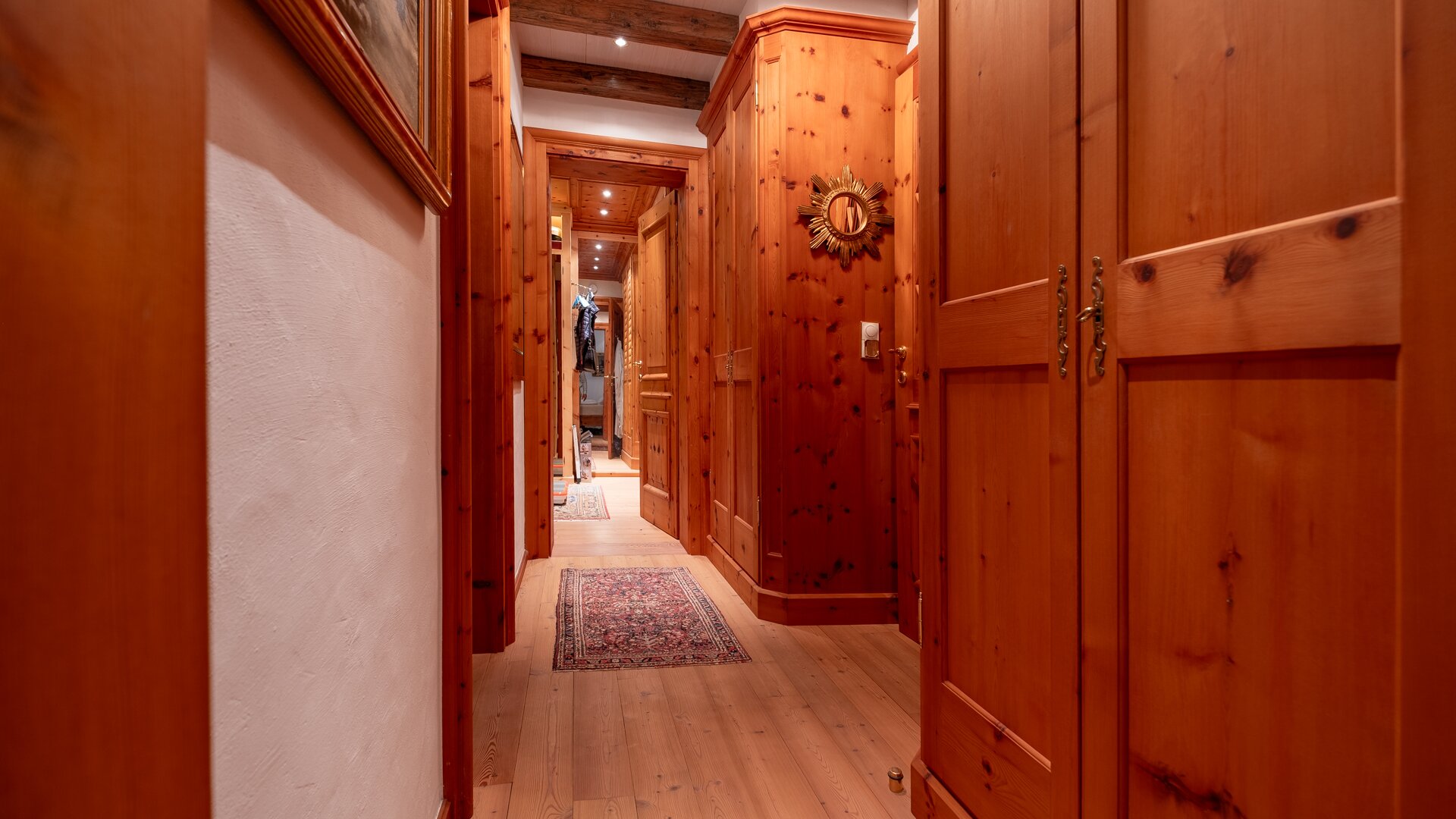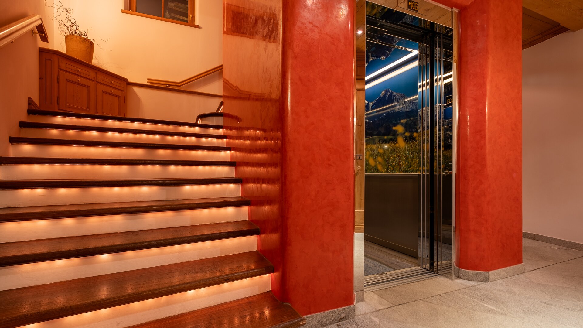 Bereits der erste Eindruck dieses Chalets ist beeindruckend. Ein stilvolles Entree heißt Sie und Ihre Gäste willkommen. Vom Vorgarten aus gelangen Sie entweder in Ihr privates Apartment oder über den praktischen Skikeller und den Aufzug direkt zu Ihrer Wohneinheit – ideal nach einem Tag auf der Piste oder einer Runde Golf.