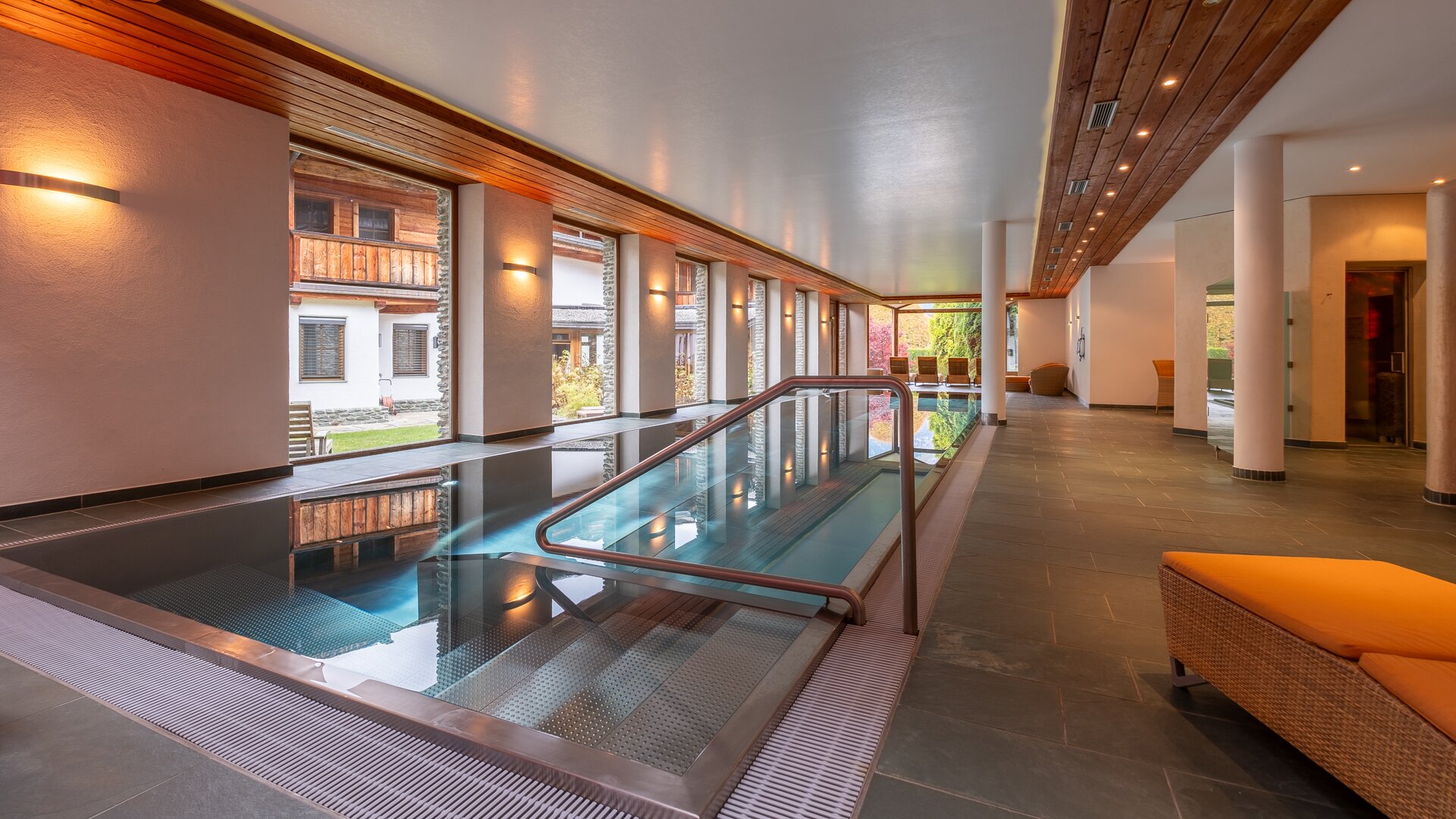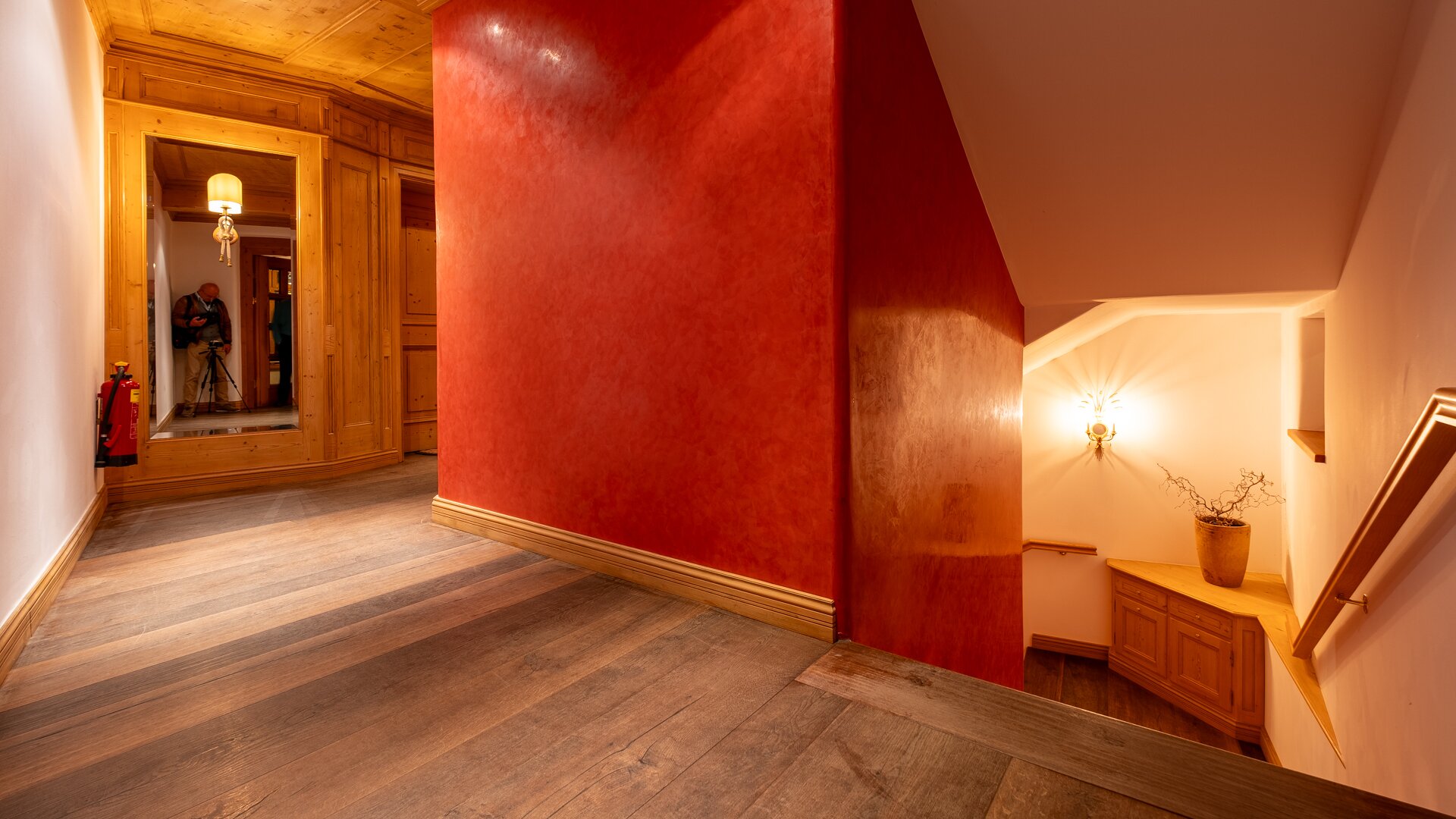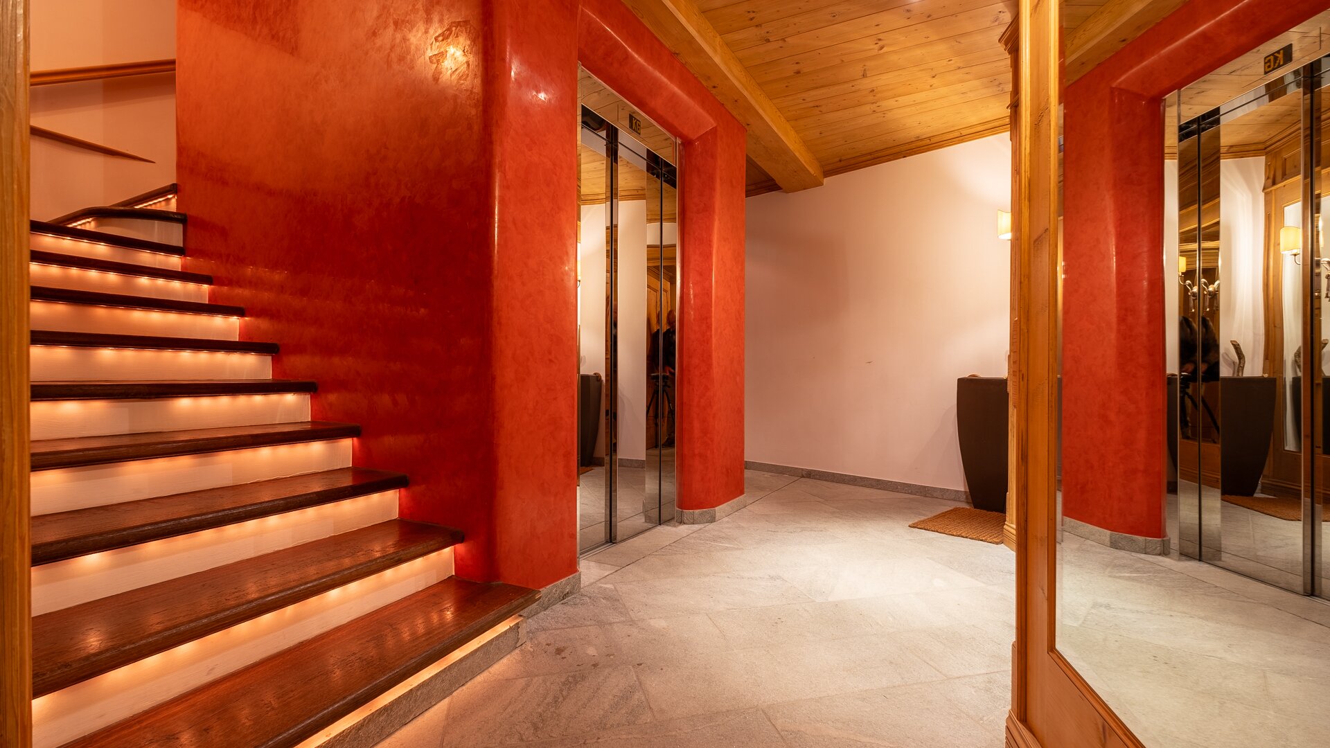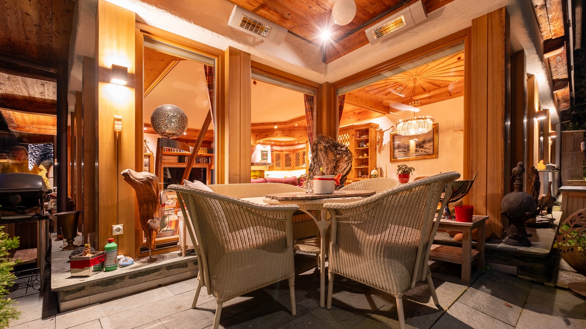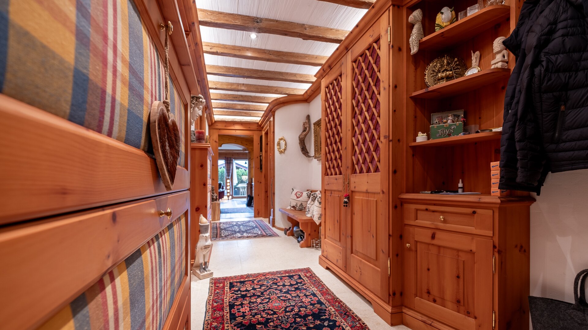 Bereits der erste Eindruck dieses Chalets ist beeindruckend. Ein stilvolles Entree heißt Sie und Ihre Gäste willkommen. Vom Vorgarten aus gelangen Sie entweder in Ihr privates Apartment oder über den praktischen Skikeller und den Aufzug direkt zu Ihrer Wohneinheit – ideal nach einem Tag auf der Piste oder einer Runde Golf.