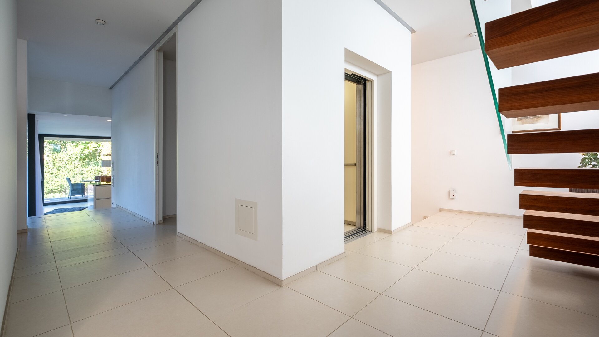 Ein Lift und hochwertigste Stiegen und Treppen lassen Sie auf die Wohn-, Arbeits – und Begegnungsebene dieser linientreue Immobilie schwingen.