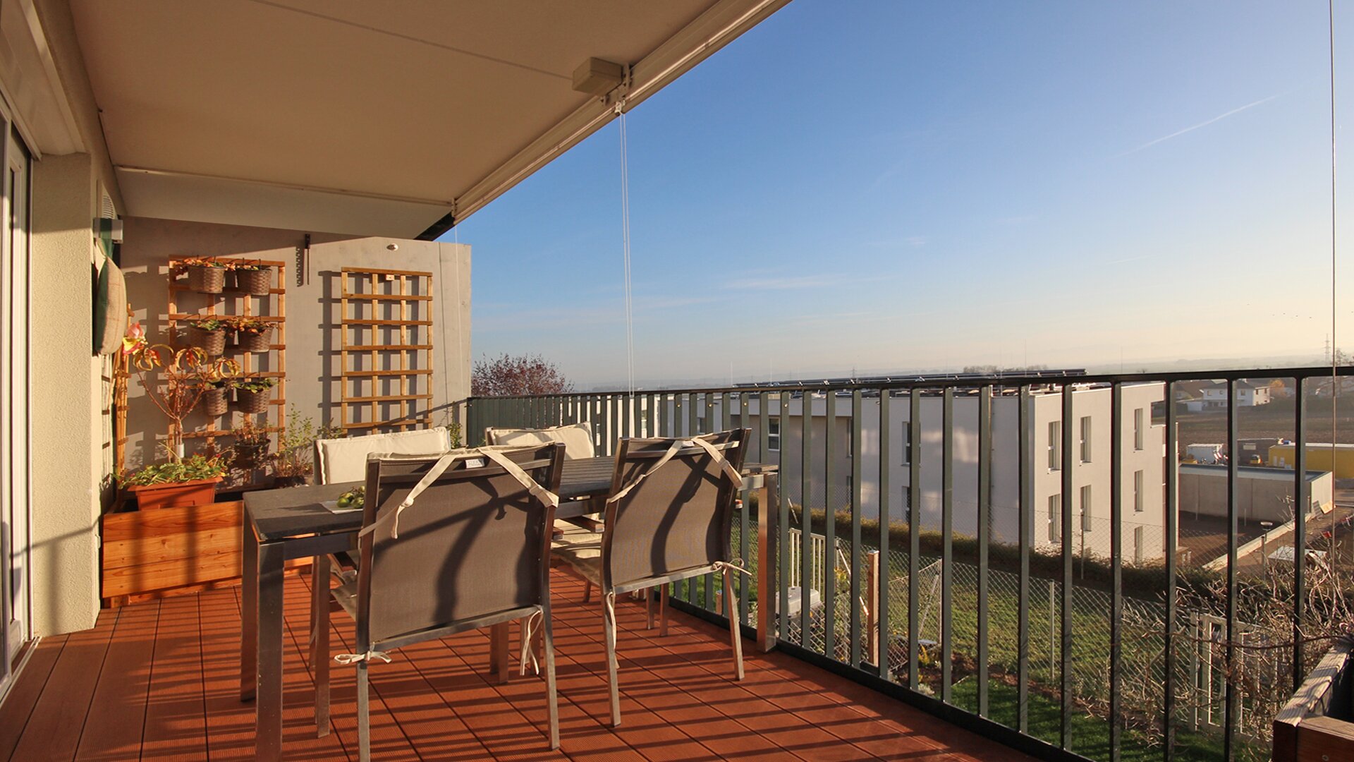 Vom Wohnzimmer sowie von der Terrasse können Sie hier den herrlichen südseitigen Blick in die Alpen geniessen.