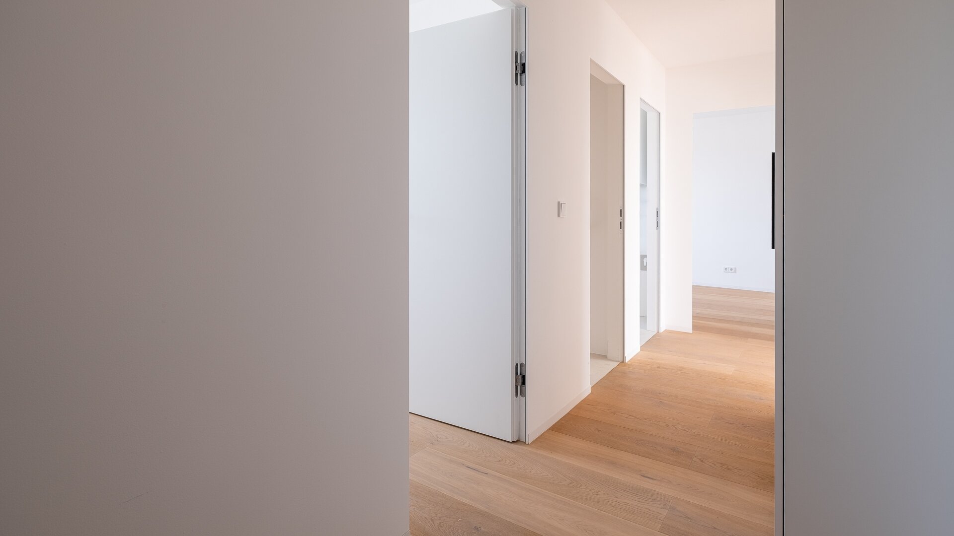 Der helle und offene Wohn-Essbereich mit Balkon schafft eine einladende Atmosphäre, perfekt für gesellige Momente und entspannte Stunden. Das Schlafzimmer beeindruckt nicht nur mit einer eigenen Terrasse, sondern auch mit einem angrenzenden Ankleideraum. Ein zusätzliches Zimmer bietet die Möglichkeit, ein Home-Office einzurichten oder nach persönlichen Bedürfnissen zu gestalten. Das Badezimmer verfügt eine Dusche mit separatem WC.