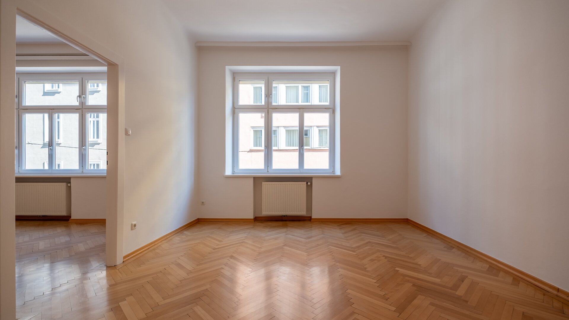 Hohe Räume, beste Belichtung, tolle Böden, stilvolle Türen und Fenster bilden ein einzigartiges Ambiente.