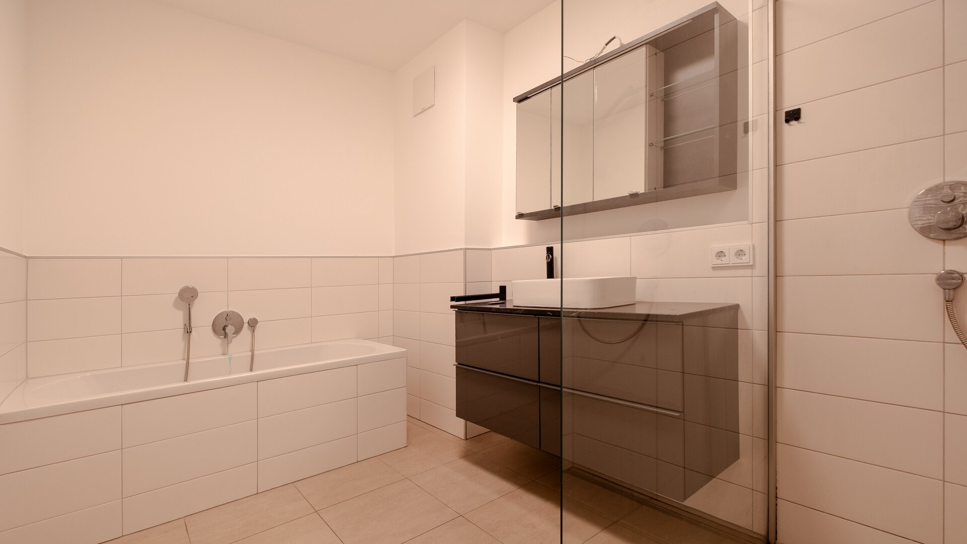 Die Wohnung verfügt über zwei gut nutzbare Zimmer: Ein Elternschlafzimmer sowie ein zusätzliches Zimmer, das flexibel als Kinder- oder Gästezimmer, Büro oder Hobbyraum genutzt werden kann. Das Badezimmer bietet sowohl eine Dusche als auch eine Badewanne. Ein besonderes Ausstattungsmerkmal ist die Klimaanlage in den beiden Schlafräumen und im Wohn-Essbereich – sie sorgt ganzjährig für ein behagliches Raumgefühl. Für zusätzlichen Komfort sorgen das separate WC und ein Abstellraum.