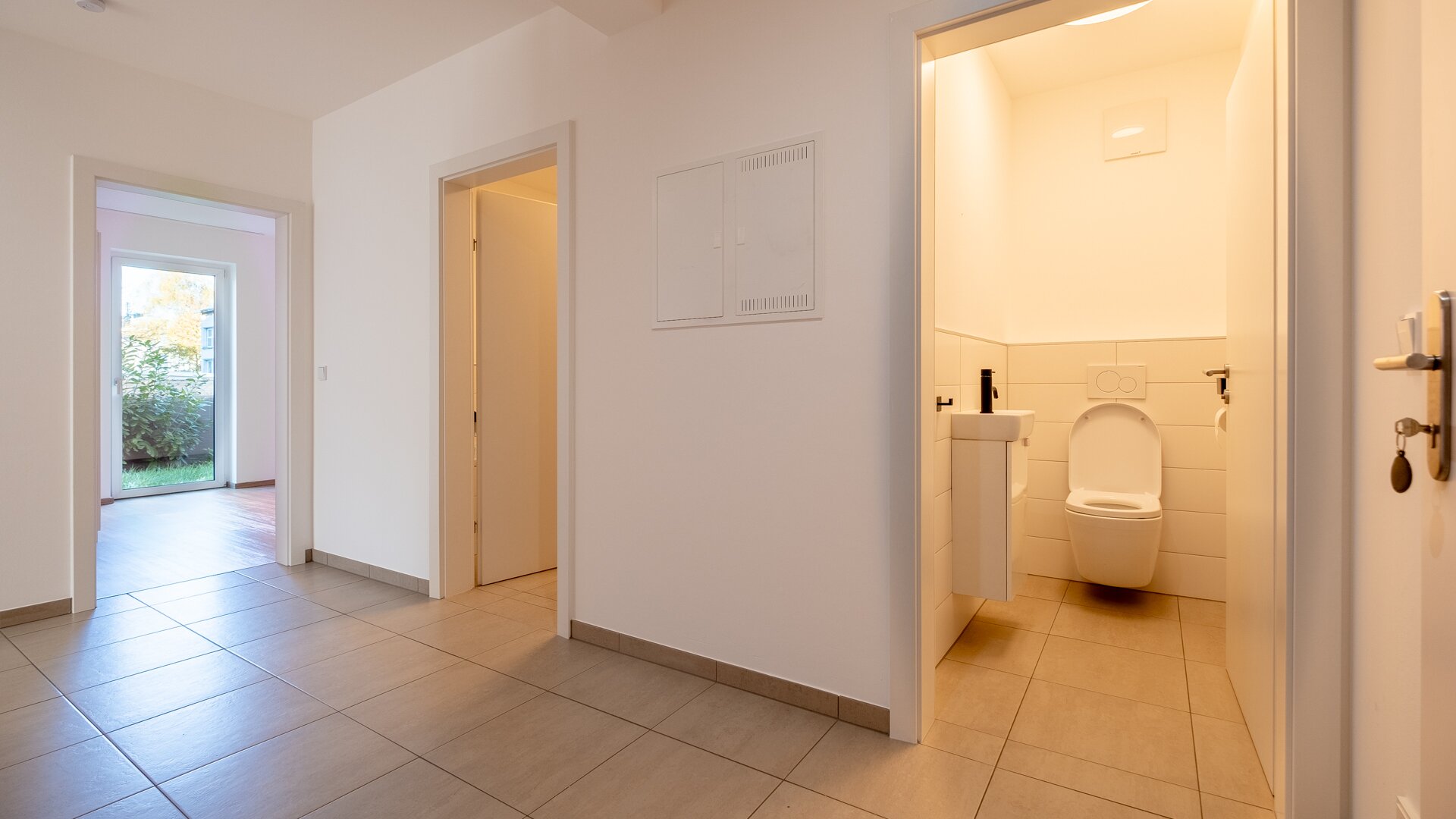 Diese attraktive 3-Zimmer Wohnung überzeugt durch modernen Wohnkomfort und eine durchdachte Raumaufteilung in ruhiger Wohnlage. Beim Eintreten empfängt Sie ein großzügiger Vorraum, der Ihnen viel Platz bietet – ideal zum Ankommen, Verstauen und für einen angenehmen ersten Eindruck. Von hier aus gelangen Sie bequem und barrierefrei in alle Bereiche der Wohnung.