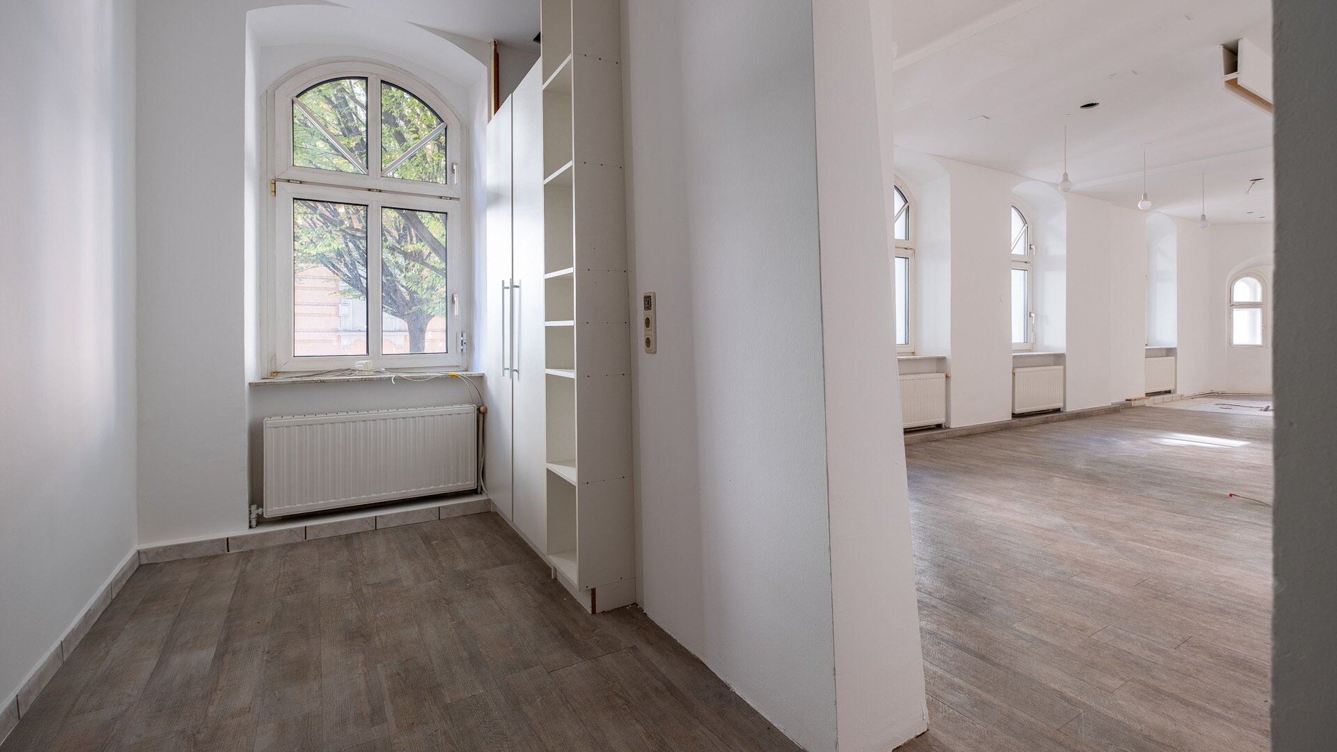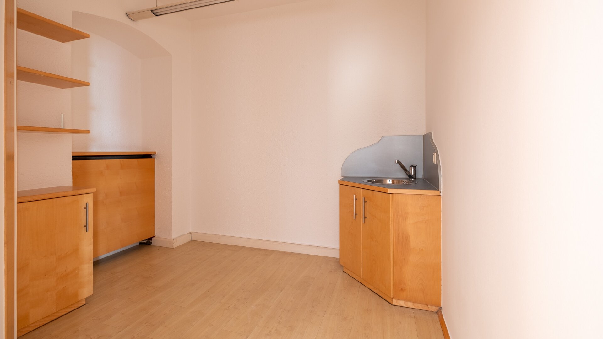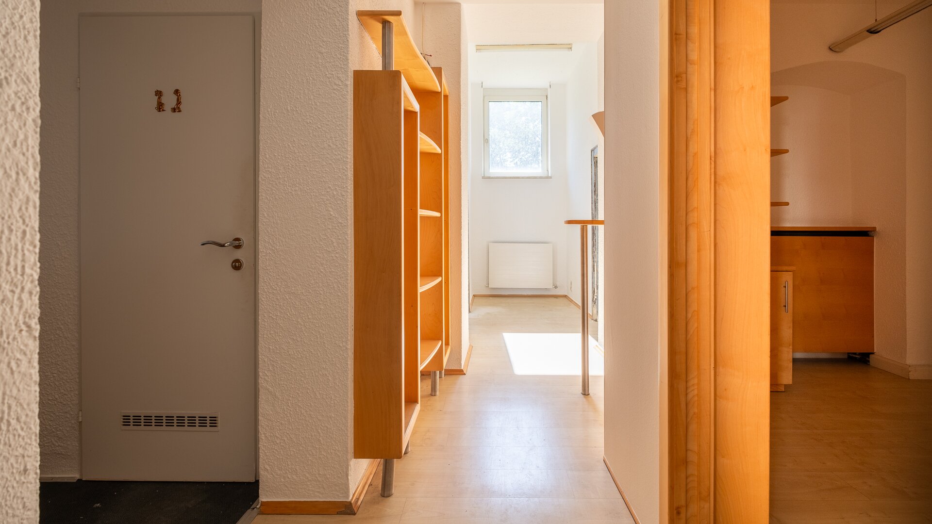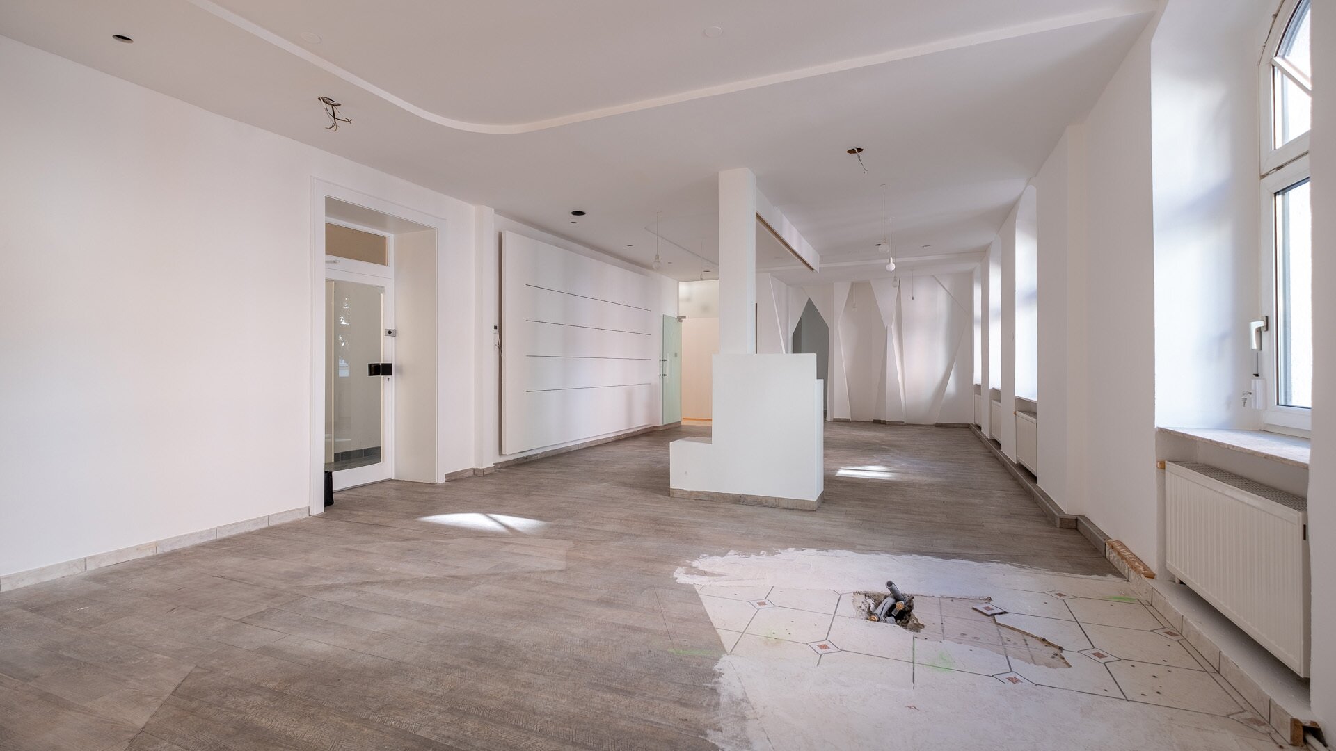 Beim Betreten gelangt man direkt in den weitläufigen Eingangsbereich, der das Herzstück des Objekts bildet. Hier eröffnet sich viel Platz für einen Empfangs- oder Verkaufsbereich, der individuell nach den Bedürfnissen gestaltet werden kann. Ergänzend dazu stehen zwei separate Räume zur Verfügung, die flexibel als Büroräume, Behandlungszimmer oder privater Aufenthaltsbereich genutzt werden können. Die Böden werden bei diesem Objekt noch erneuert.