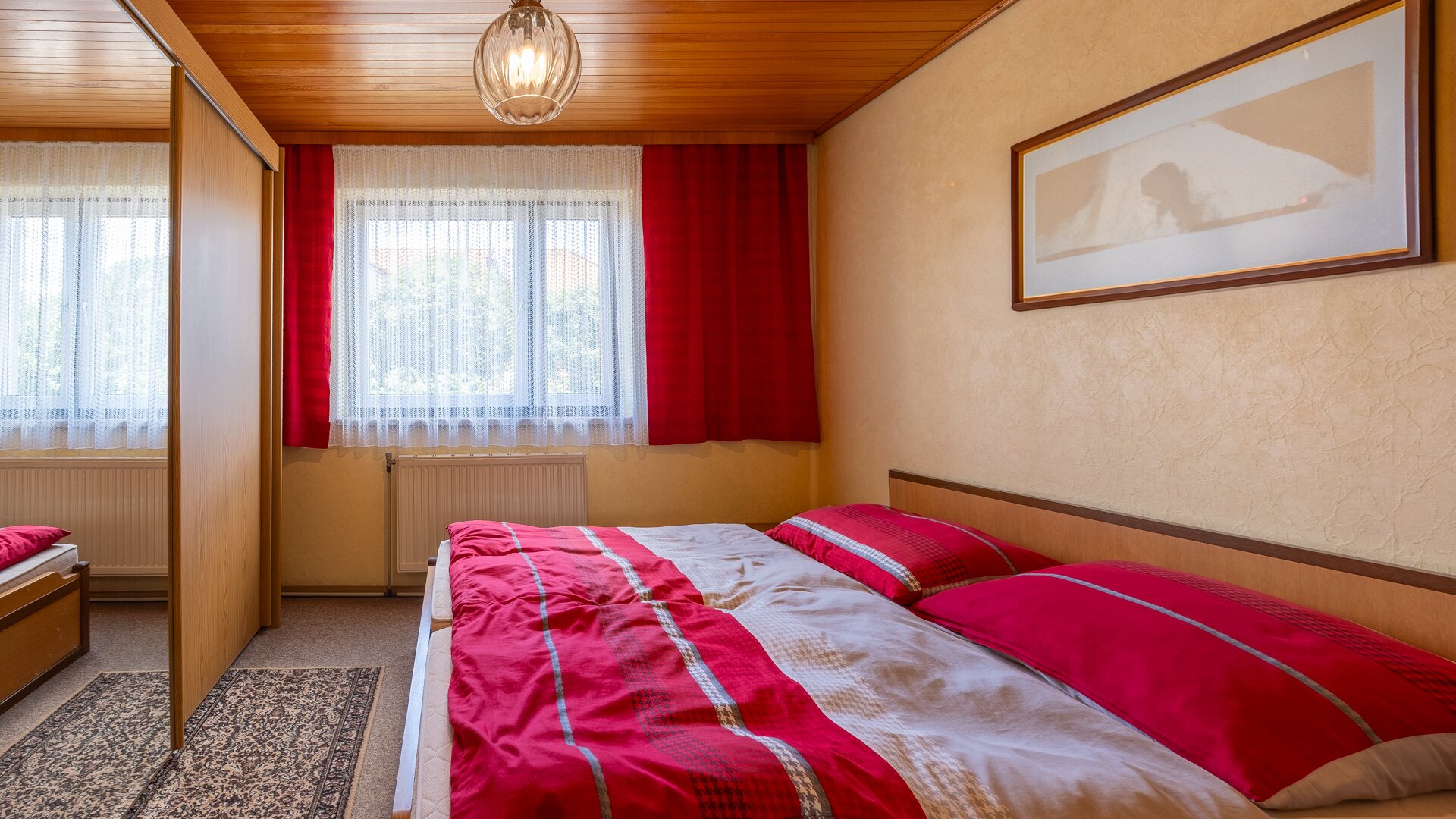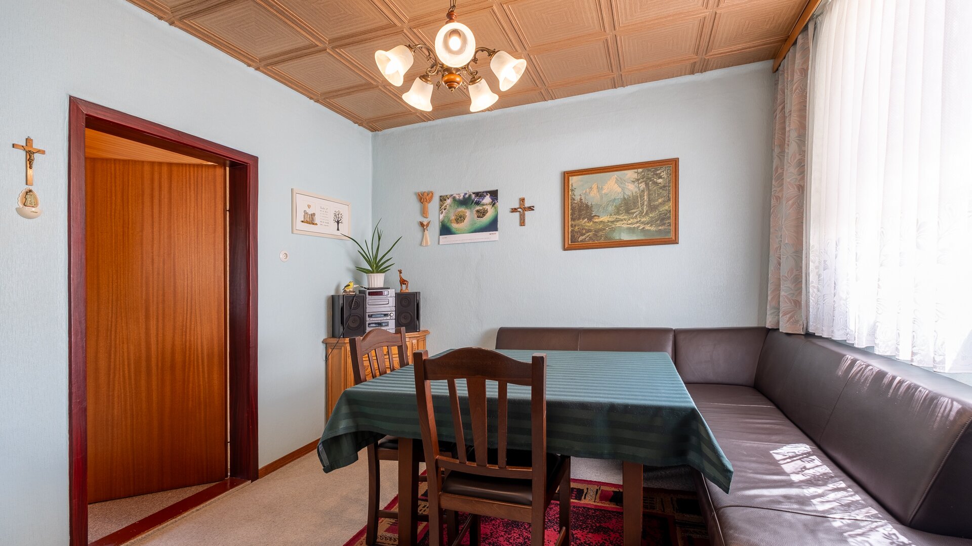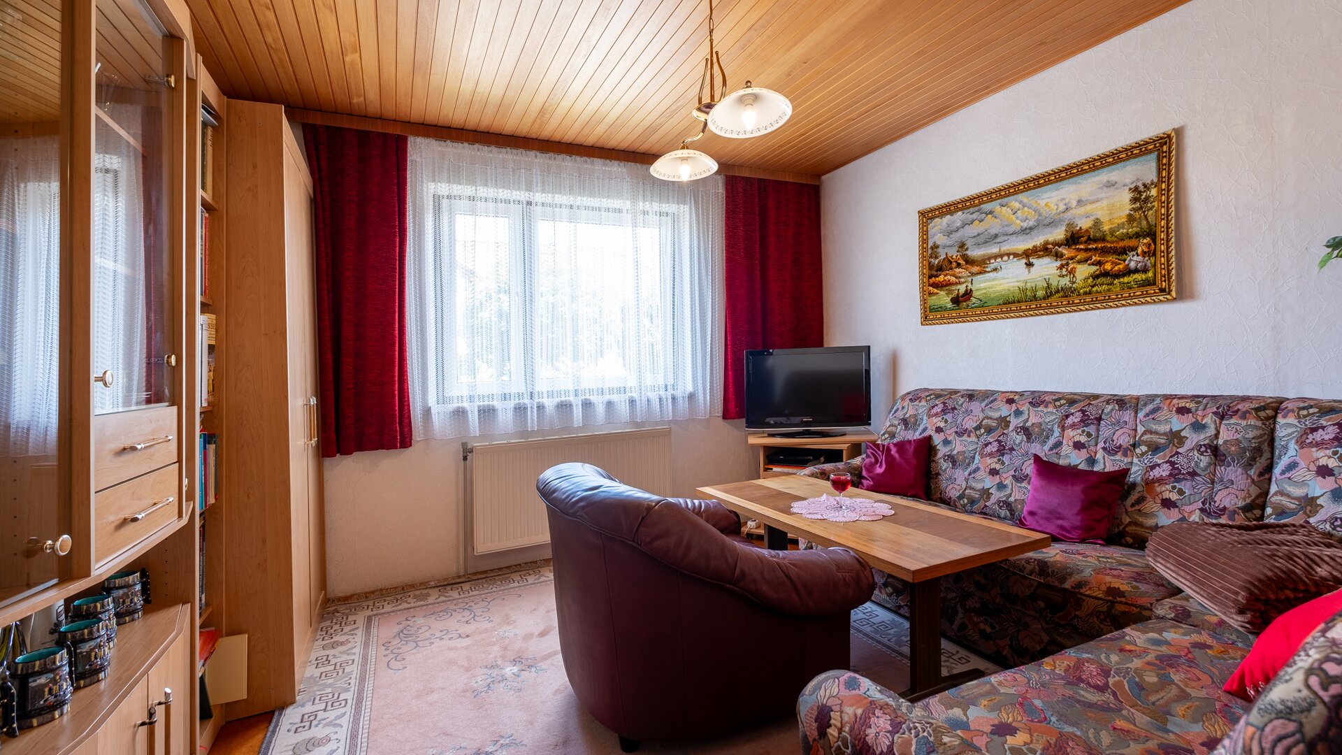 Im Erdgeschoß befindet sich die 82 m² große erste Bestandswohneinheit. Aufgeteilt in: Vorraum, Küche, Wohnzimmer, Esszimmer, Schlafzimmer, Bad, WC. Über die kleine Treppe gelangt man ins Obergeschoß zum Kinderzimmer/Gästezimmer.