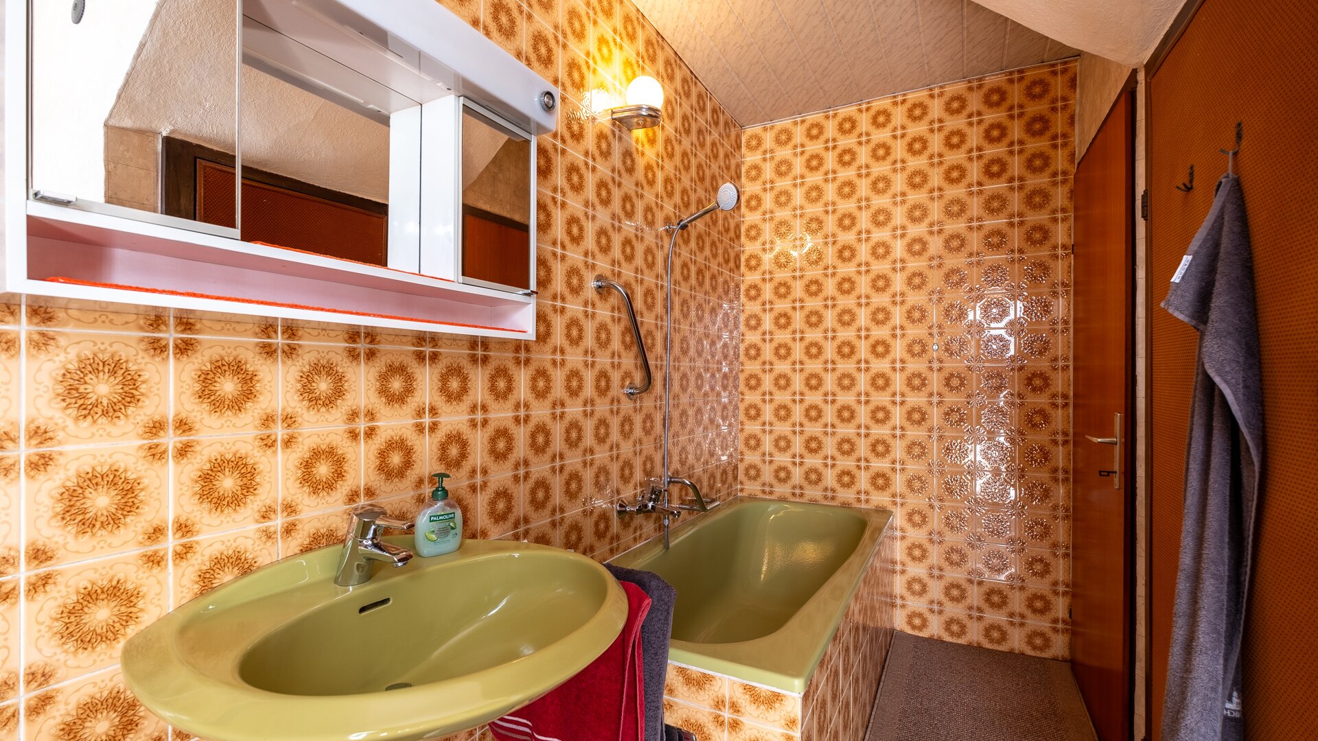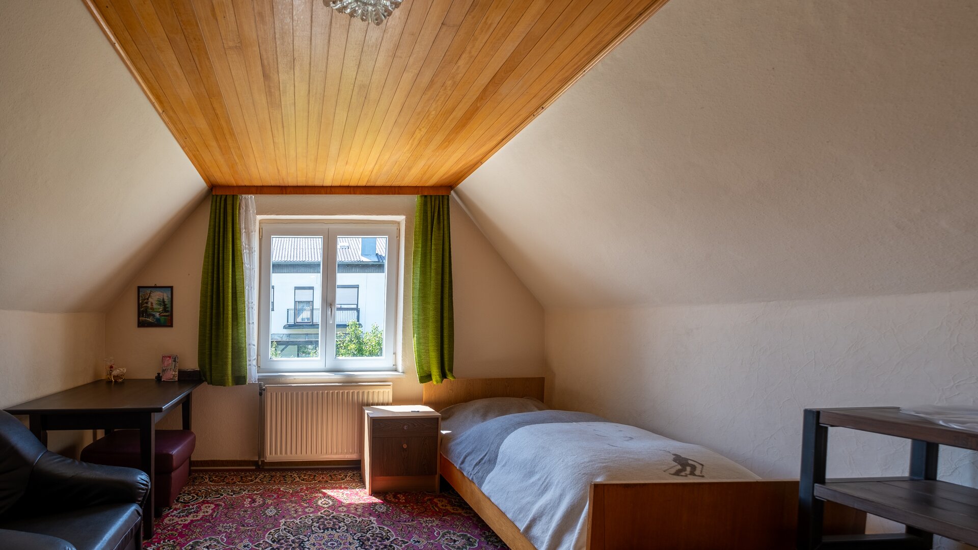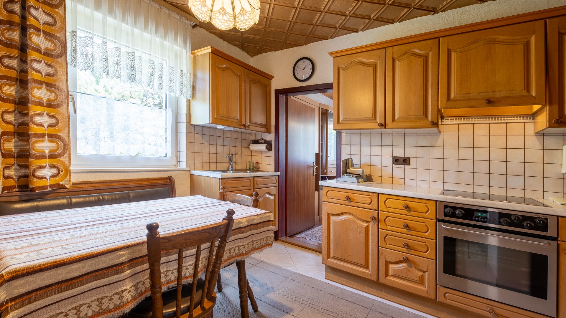 Im Erdgeschoß befindet sich die 82 m² große erste Bestandswohneinheit. Aufgeteilt in: Vorraum, Küche, Wohnzimmer, Esszimmer, Schlafzimmer, Bad, WC. Über die kleine Treppe gelangt man ins Obergeschoß zum Kinderzimmer/Gästezimmer.