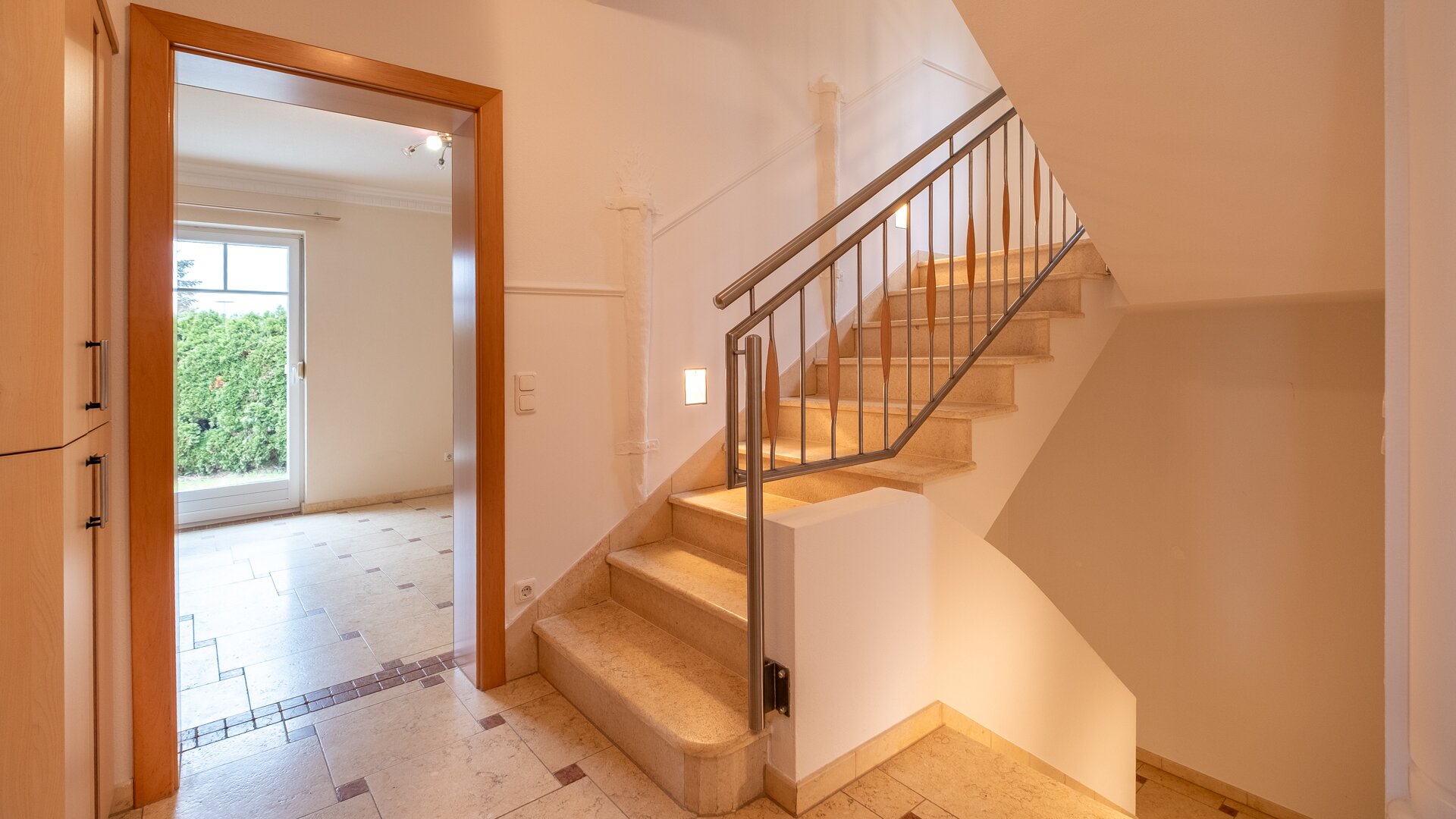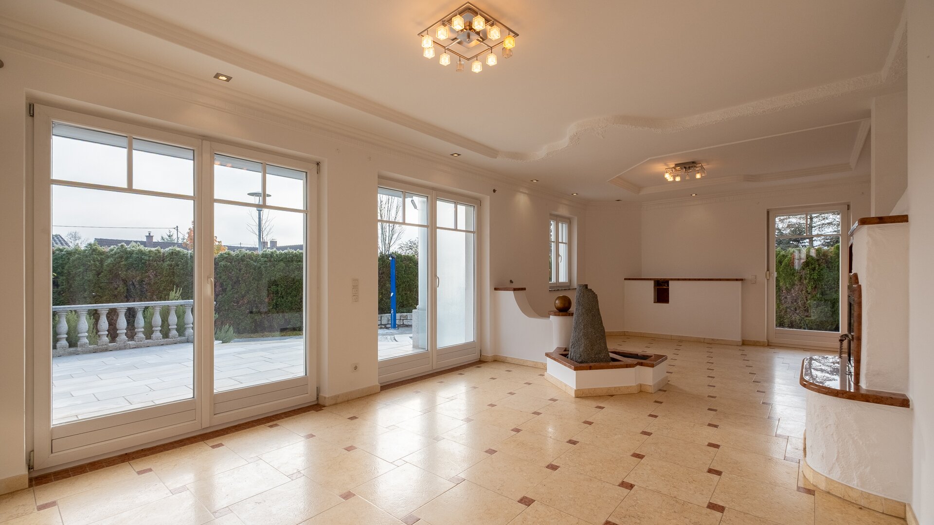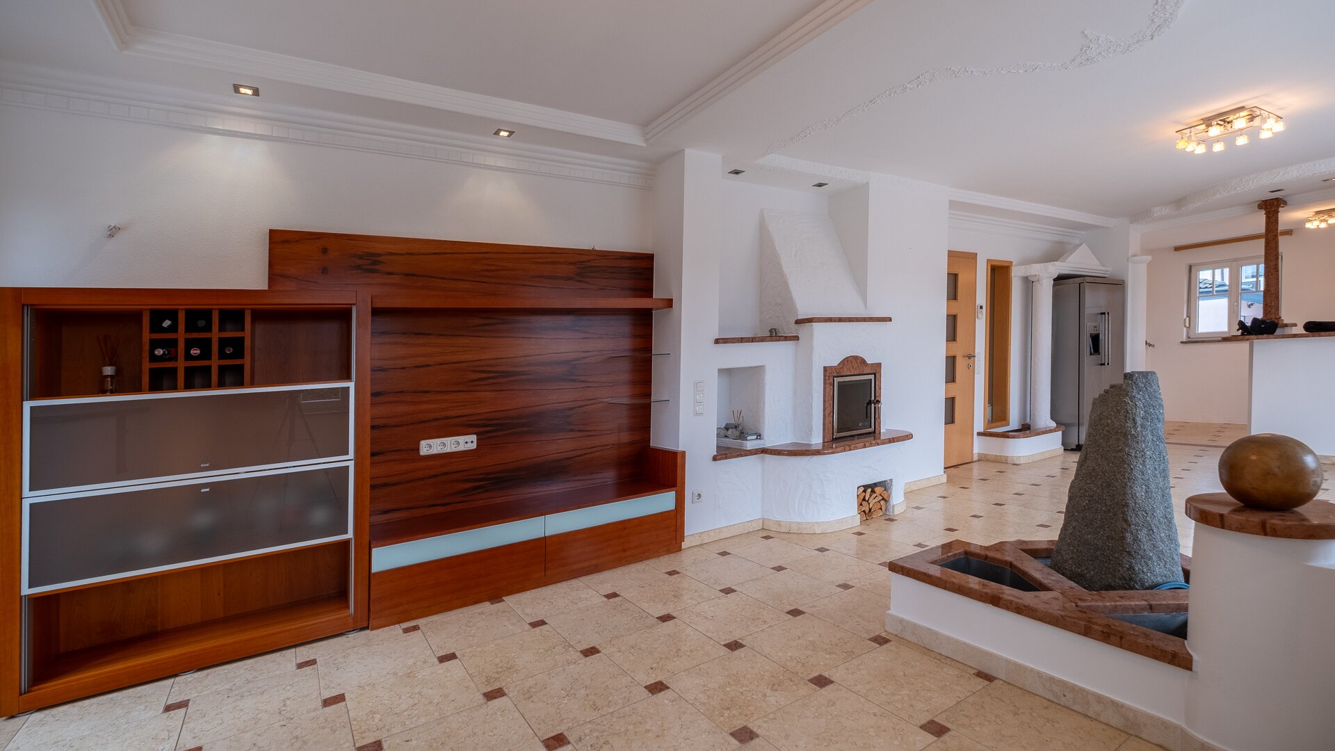 Die hochwertige Ausstattung, wie die stilvolle Steinmaterialen, schaffen eine elegante Atmosphäre, während die Fußbodenheizung für wohlige Wärme sorgt. Der Kamin im Wohnzimmer bietet an kalten Winterabenden eine gemütliche Atmosphäre und lädt zum Verweilen ein. Die moderne Zentralheizung garantiert zudem eine angenehme Temperatur zu jeder Jahreszeit.