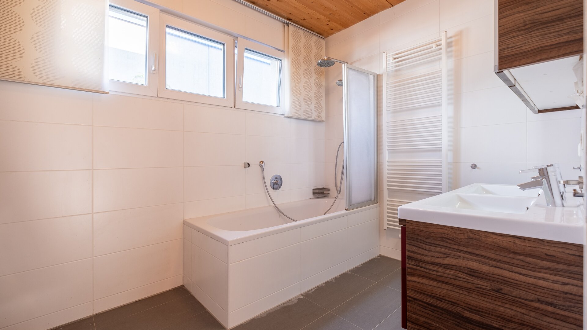Das Badezimmer verfügt über ein Fenster, das den Raum mit Tageslicht erhellt, und ist mit einer Badewanne ausgestattet – perfekt für entspannte Stunden. Eine separate Toilette ergänzt den Wohnkomfort.