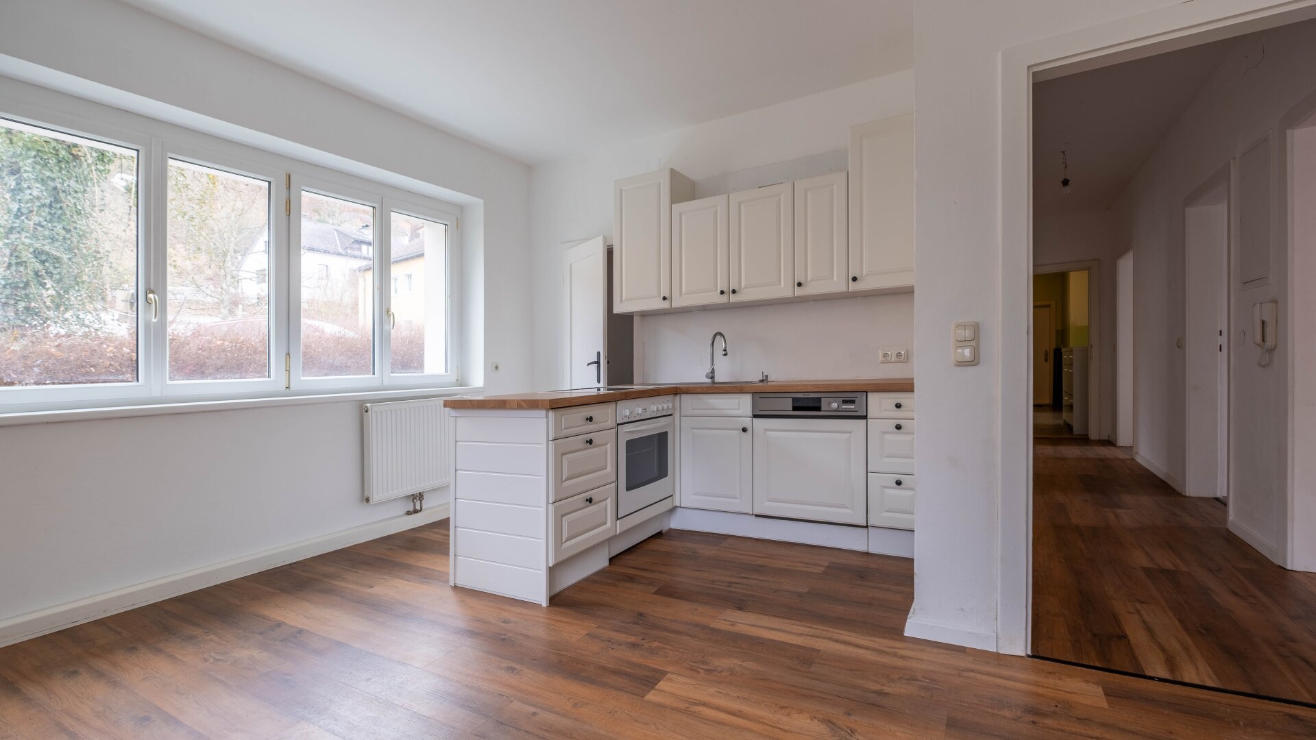 Im schönen Untermühl an der Donau finden Sie diese Wohnung in der ruhigen Gemeinde St. Martin im Mühlkreis im Bundesland Oberösterreich. Sie liegt in einem Wohnhaus und verfügt über einen eigenen Gartenanlage, einen eigenen Garten und eine Terrasse nach Südosten ausgerichtet. Genießen Sie Viel Sonnenschein und eine schöne Aussicht. In der direkten Umgebung befinden sich wichtige Einrichtungen wie ein Arzt, der Bildungscampus mit Volks- und Mittelschule und Kindergarten, ein Supermarkt, eine Bank, ein Geldautomat, Hotel und Restaurant, die Post sowie eine Bushaltestelle.Während Sie in der neuen Küche gemütlich kochen schweift der Blick über die Donau und der Rest der Familie macht sich einen schönen Tag in der Gartenanlage mit Spielplatz und im umliegenden Freizeitparadies oder im eigenen Garten und auf der Terrasse. Willkommen