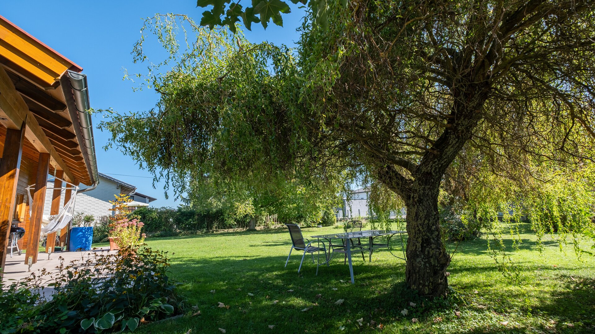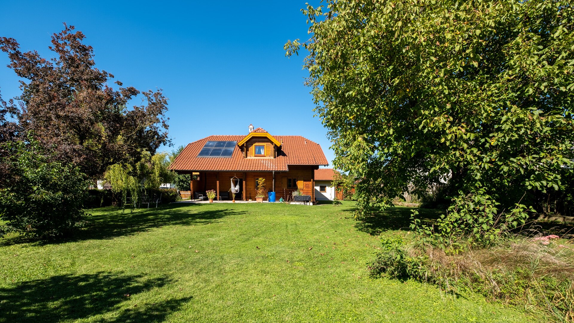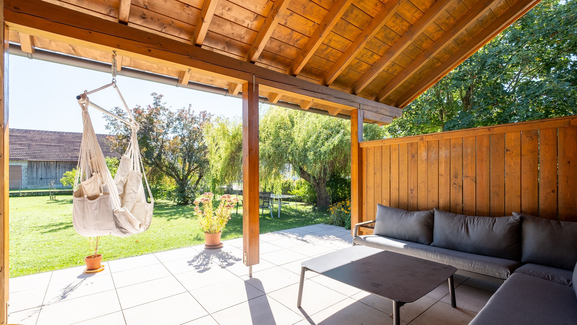 Das Herzstück dieser Immobilie ist der großzügige Garten, der Ihnen und Ihrer Familie ausreichend Platz für Erholung und Freizeitaktivitäten bietet. Genießen Sie die warmen Sonnenstrahlen auf der Südterrasse während Sie den herrlichen Ausblick auf die umliegende grüne Landschaft genießen. Der Garten ist ein wahres Paradies für Naturliebhaber und eignet sich ideal für gesellige Grillabende oder ruhige Stunden im Freien.