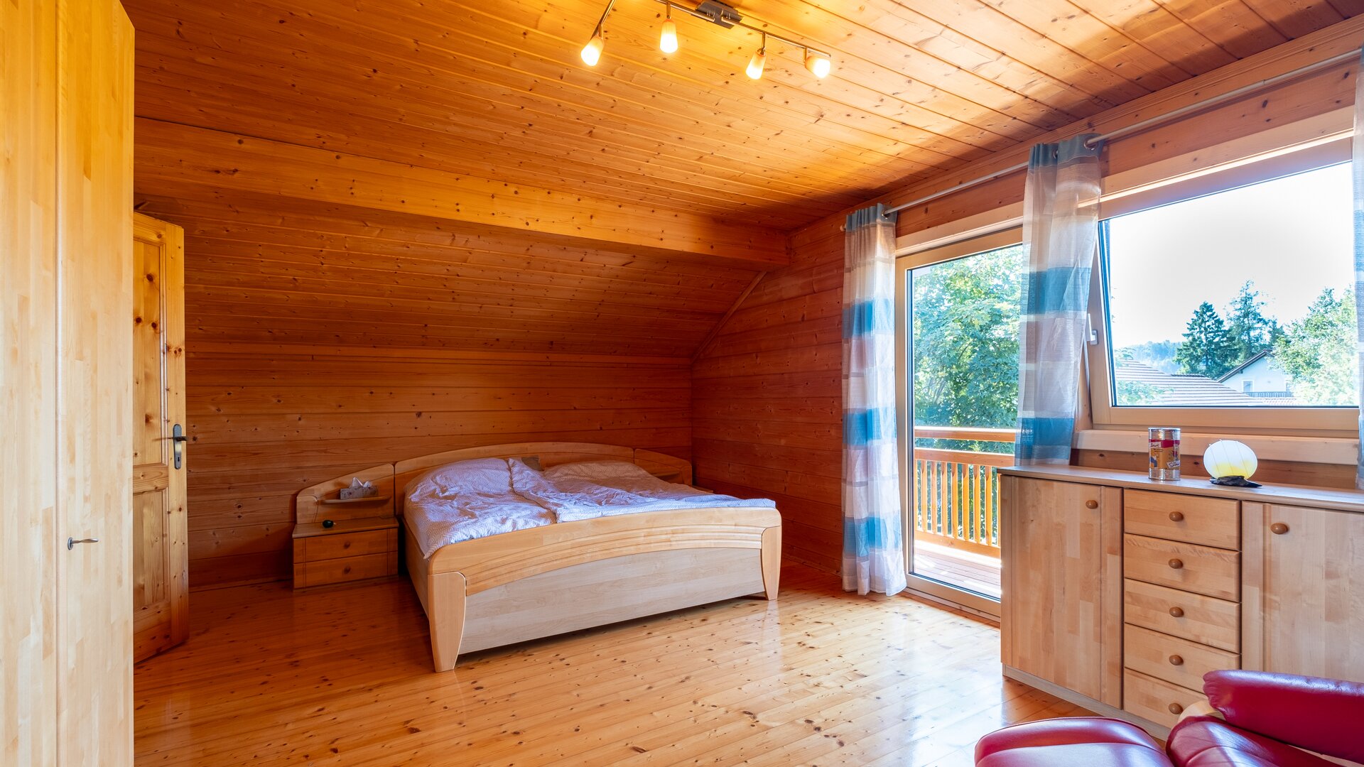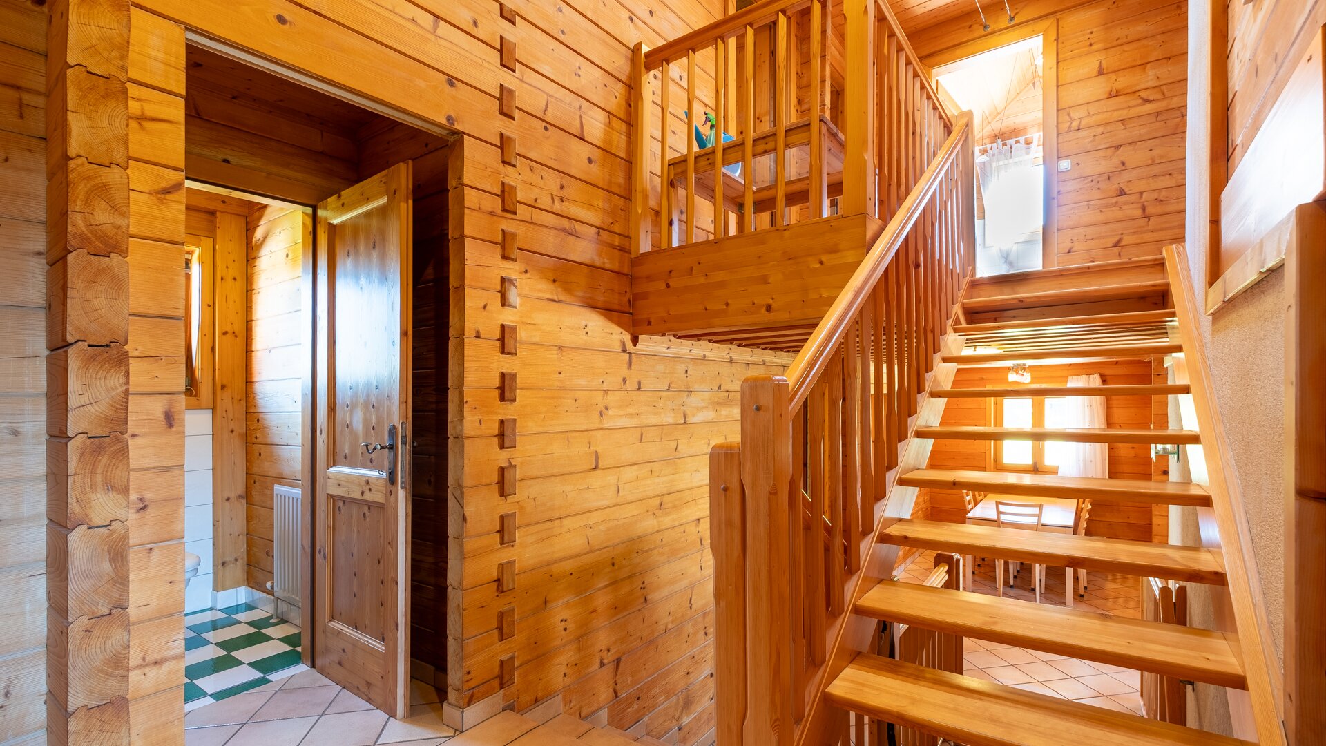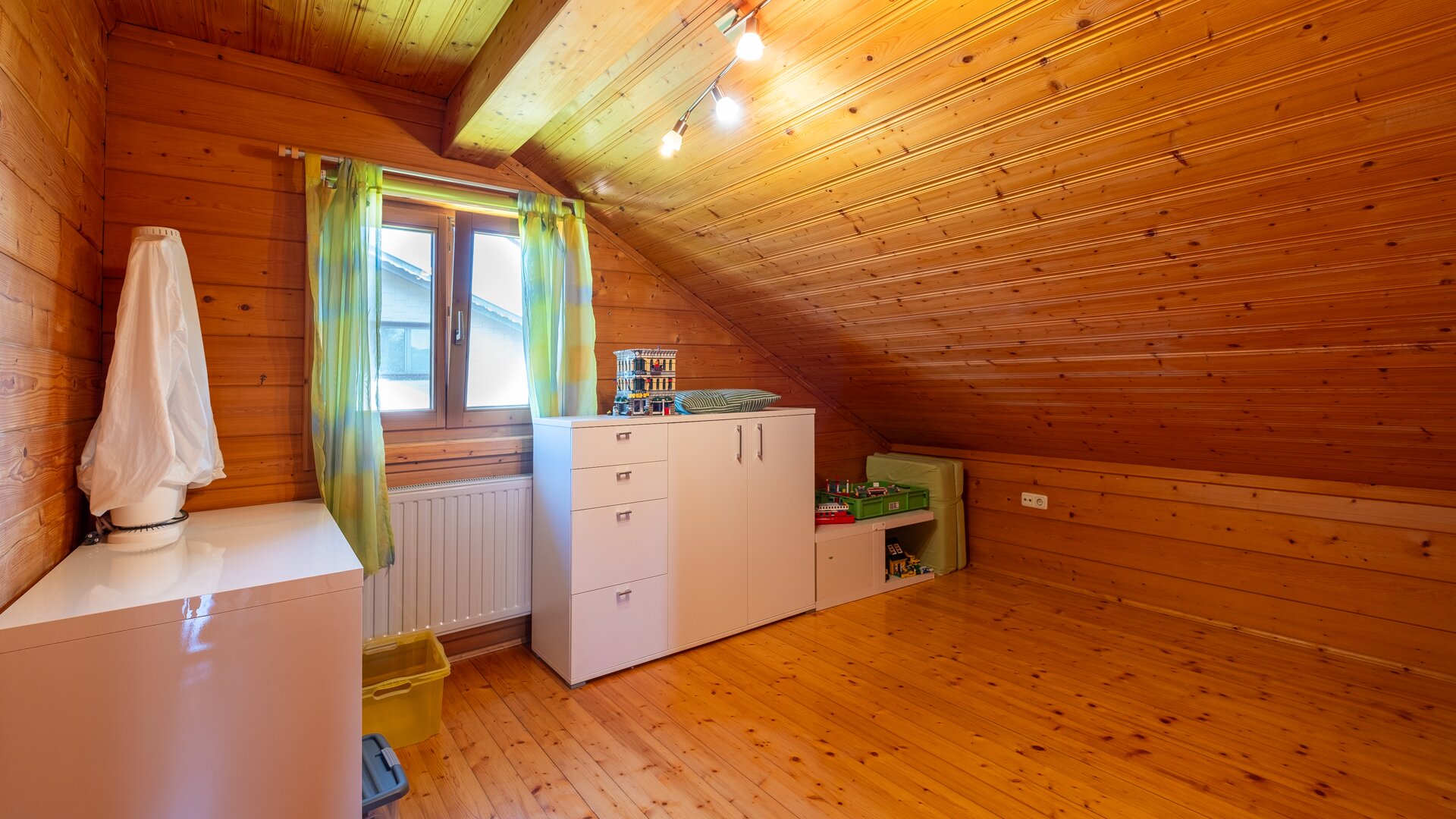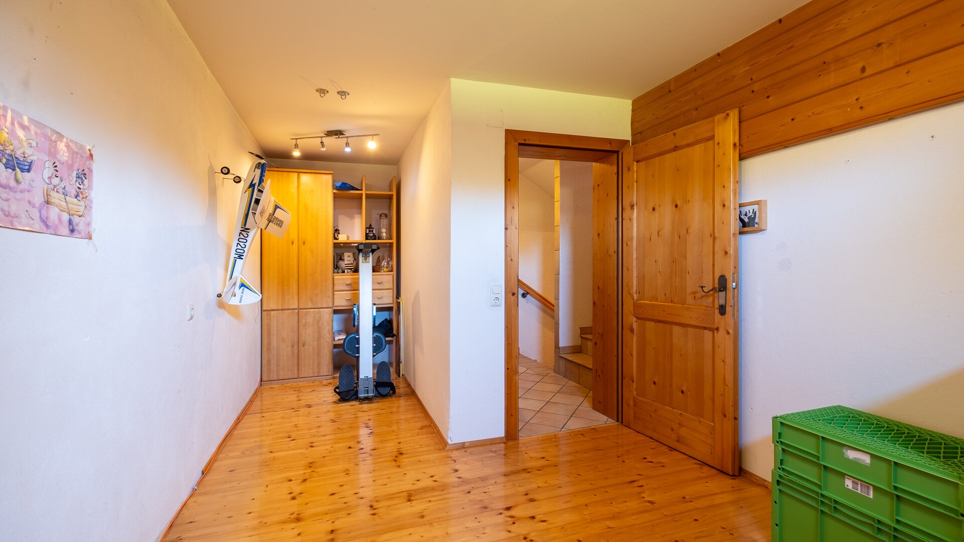 Im Obergeschoß befindet sich ein großes Schlafzimmer mit eigenem Balkon, das Badezimmer und 2 Kinderzimmer.