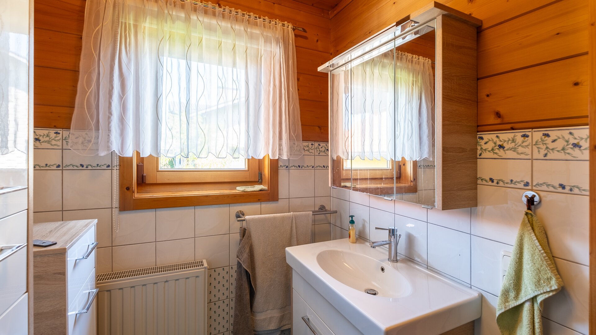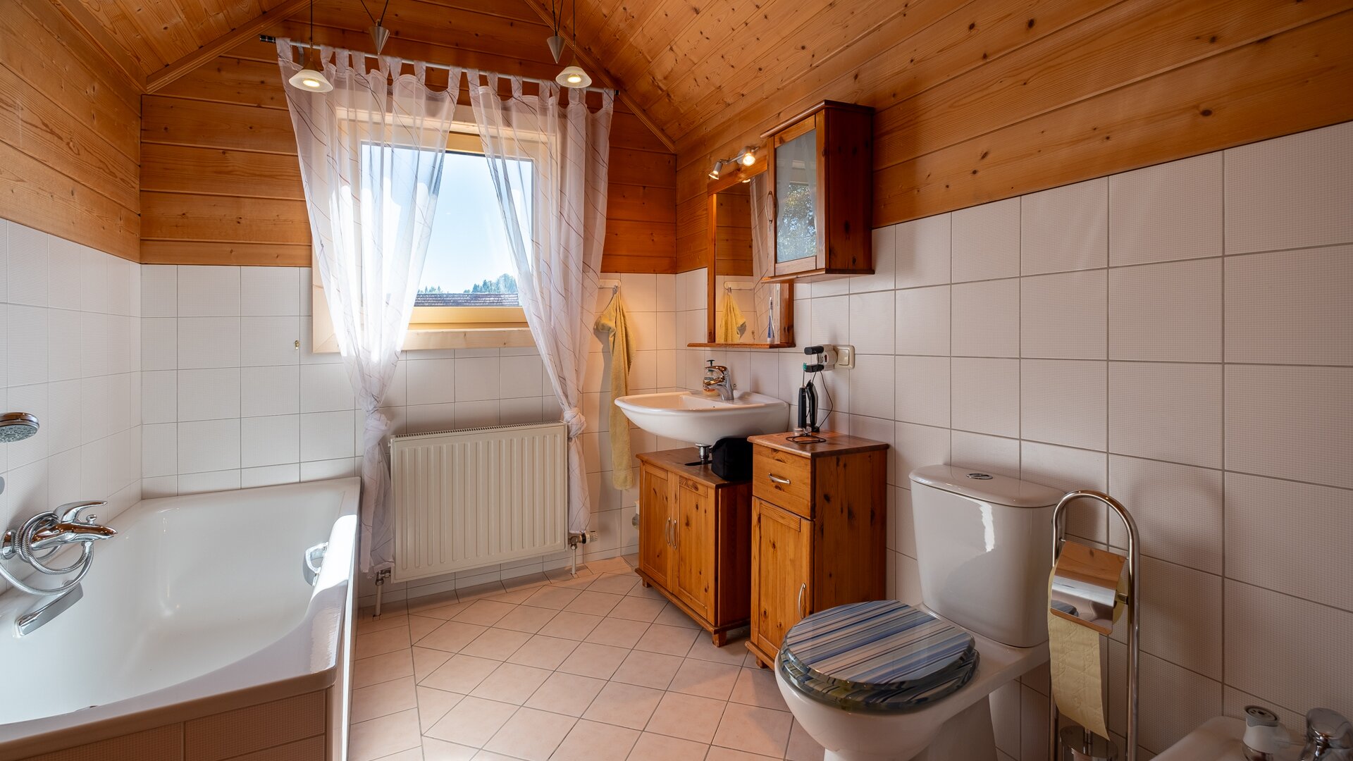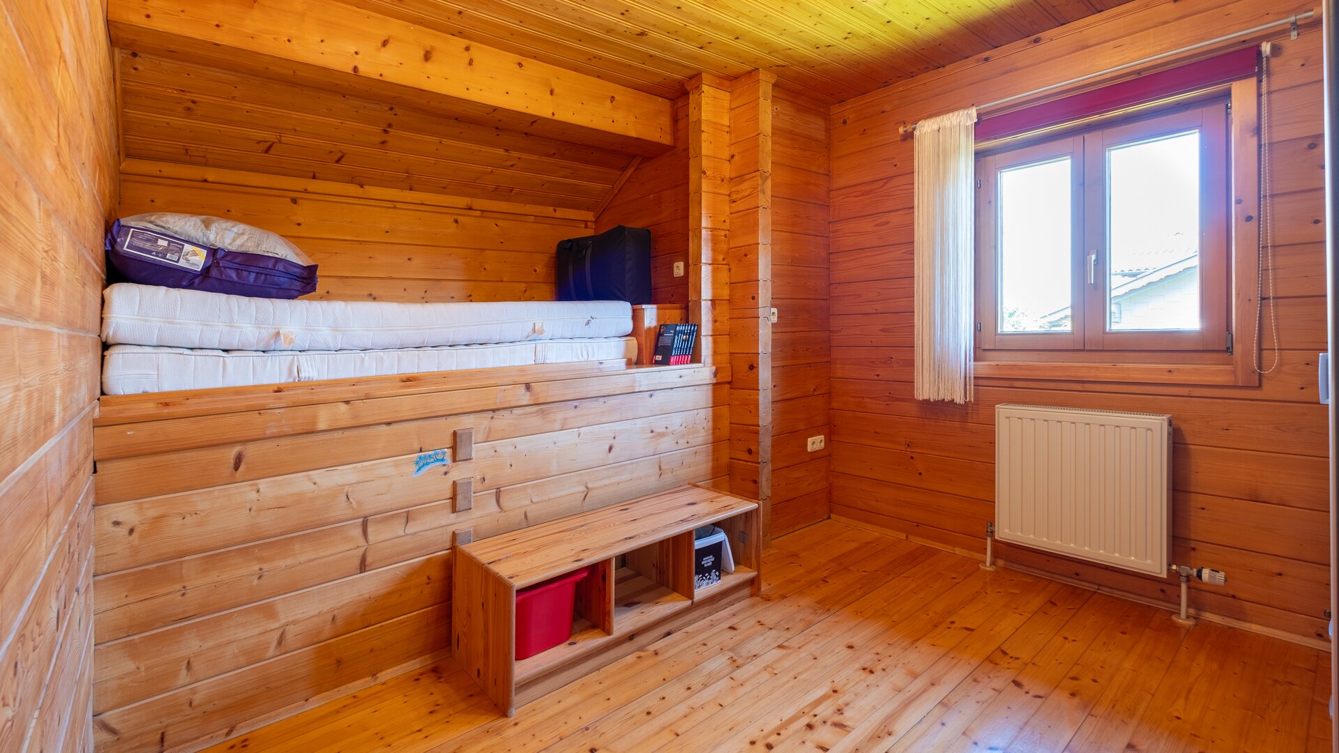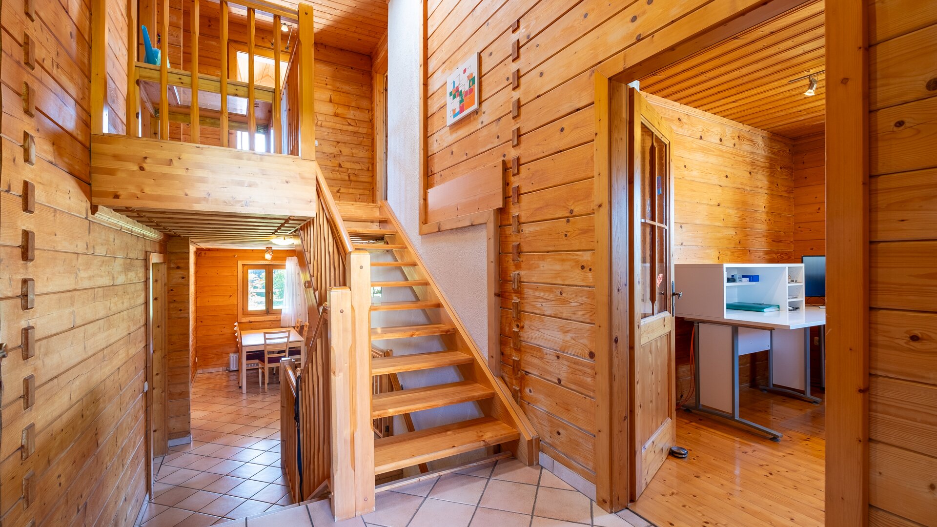 Im Obergeschoß befindet sich ein großes Schlafzimmer mit eigenem Balkon, das Badezimmer und 2 Kinderzimmer.
