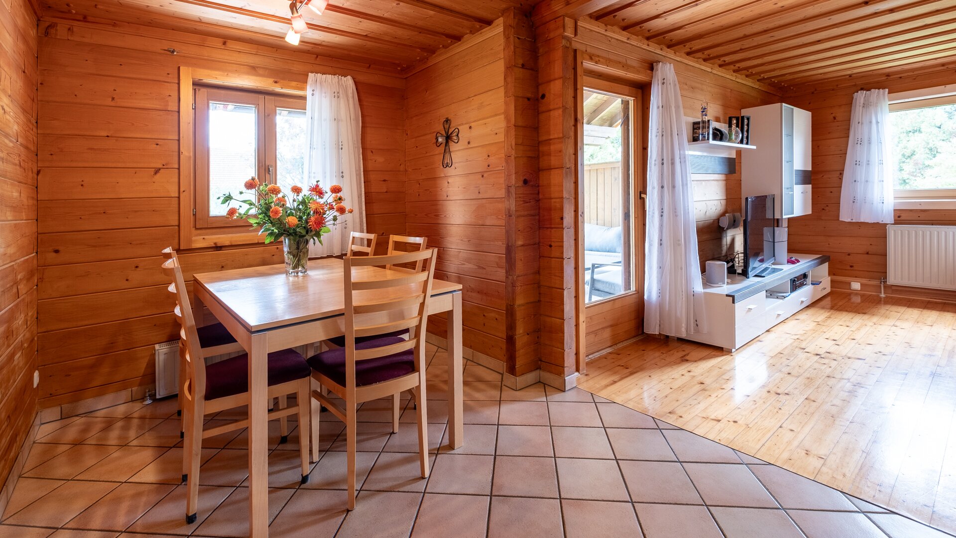 Das Innere des Hauses besticht durch eine durchdachte Raumaufteilung. Der einladende Eingangsbereich führt Sie in ein lichtdurchflutetes Wohnzimmer. Ein eigener Kamin sorgt für wohlige Wärme und eine behagliche Atmosphäre. Vom Wohnzimmer gelagen Sie auch direkt auf die Terrasse und in den Garten. Die Küche und das Esszimmer sind gleich daneben angebunden. Weiters befindet sich hier noch ein Hobbyraum/Gästezimmer. Dielen verleihen dem Raum eine besondere Note und machen das Wohnen zu einem rundum angenehmen Erlebnis.
