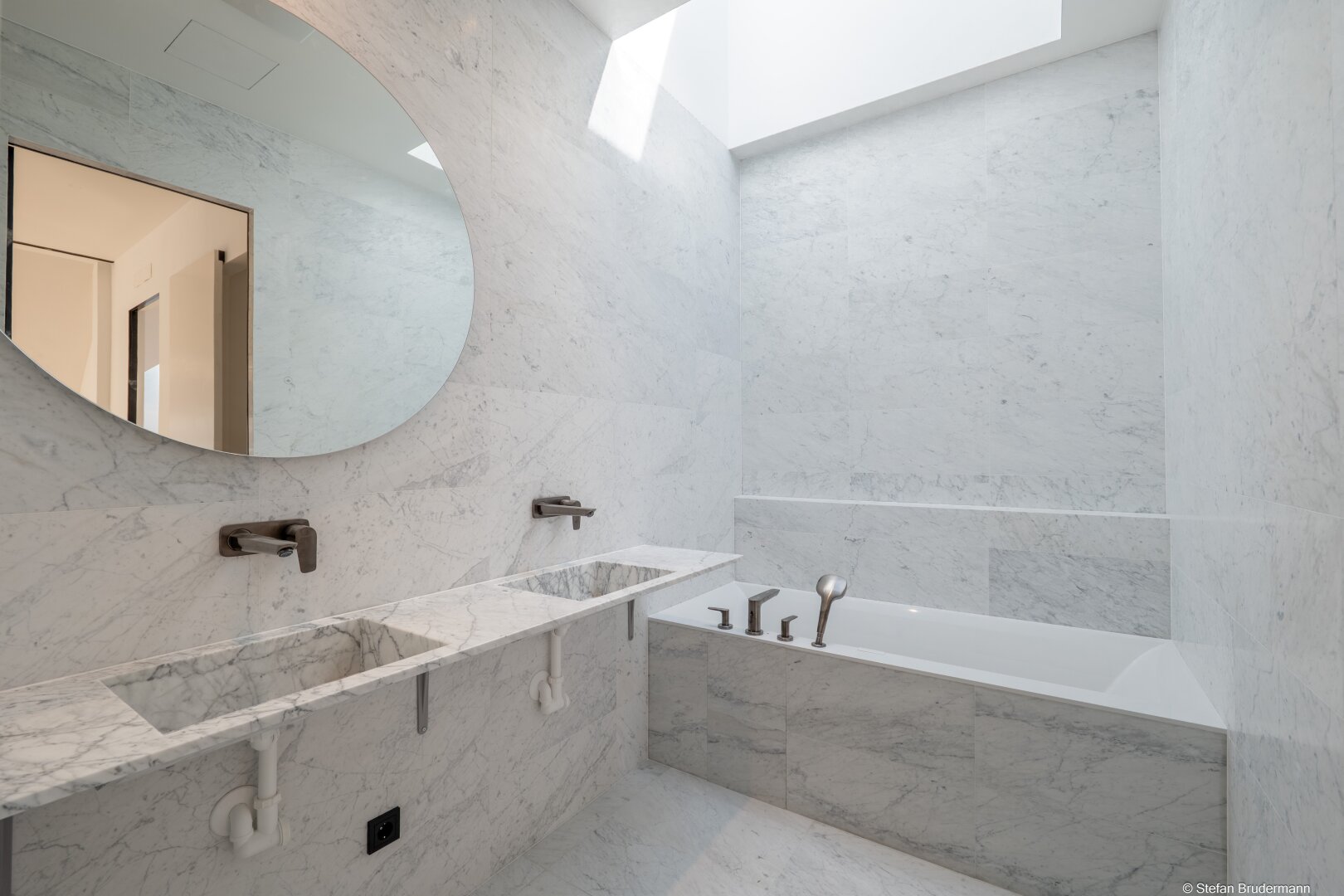 - Bathroom in Carrara marble with shower and bathtub. Designer fixtures, approx. 6 m²