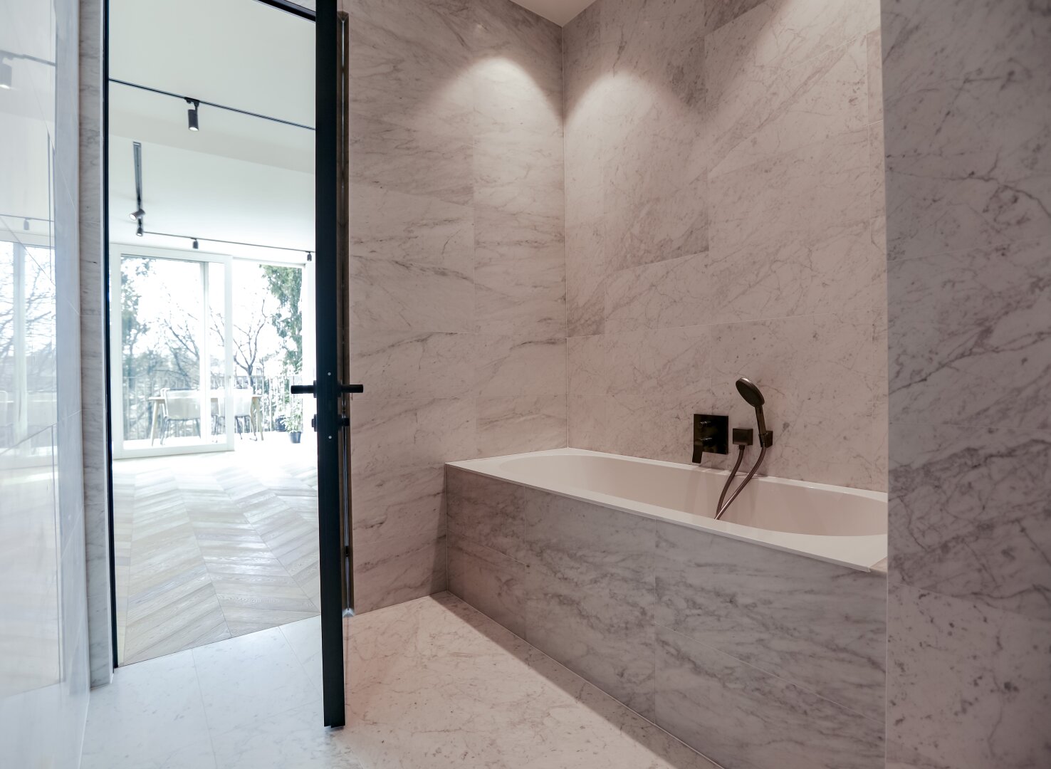 - Materialität in Perfektion: Edler Carrara-Marmor in den Bädern, feinstes Echtholzparkett und Design-Armaturen setzen luxuriöse Akzente.