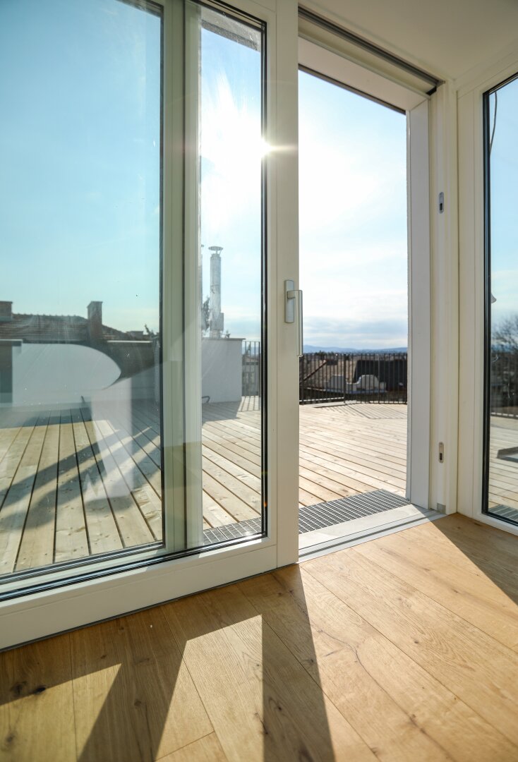 - Licht als Gestaltungselement: Großzügige Panoramaverglasungen (Holz-Alu, 3-fach Glas) fluten die Räume mit Tageslicht.