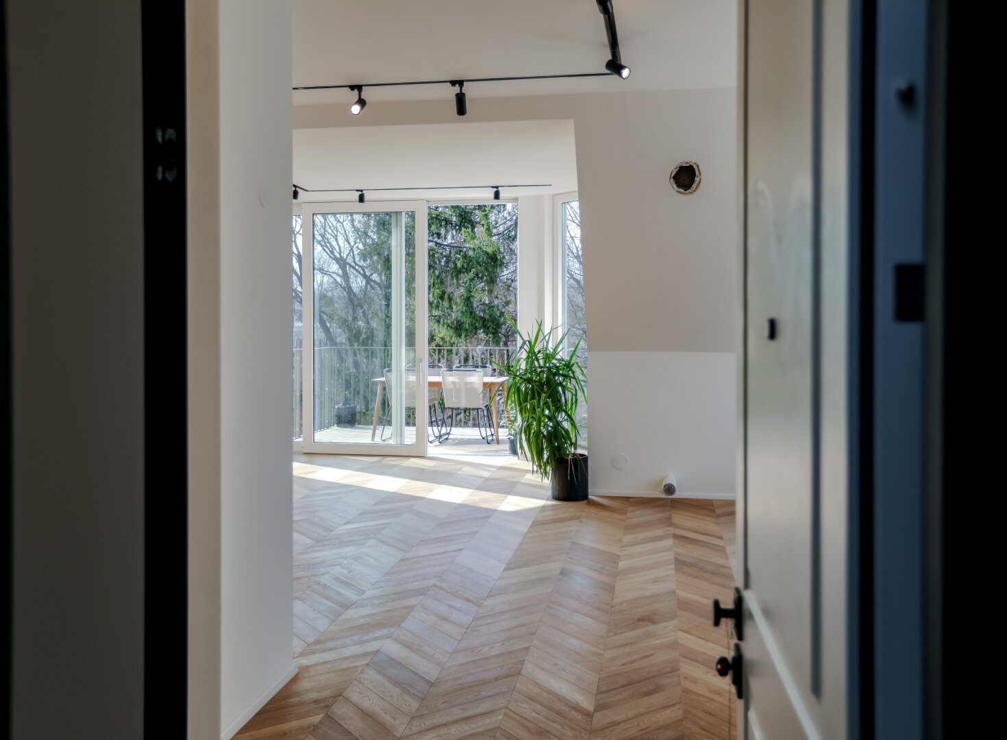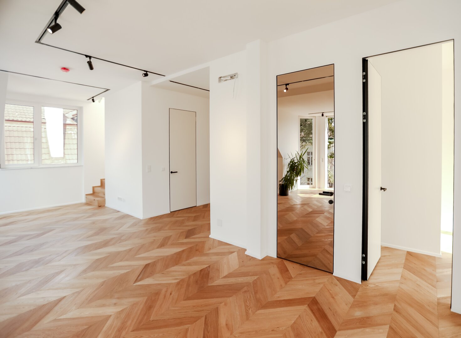 - Raumgefühl ohne Grenzen: Beeindruckende Raumhöhen von 3 bis 4,5 Metern und 2,50 m hohe Innentüren schaffen ein unvergleichliches Volumen.